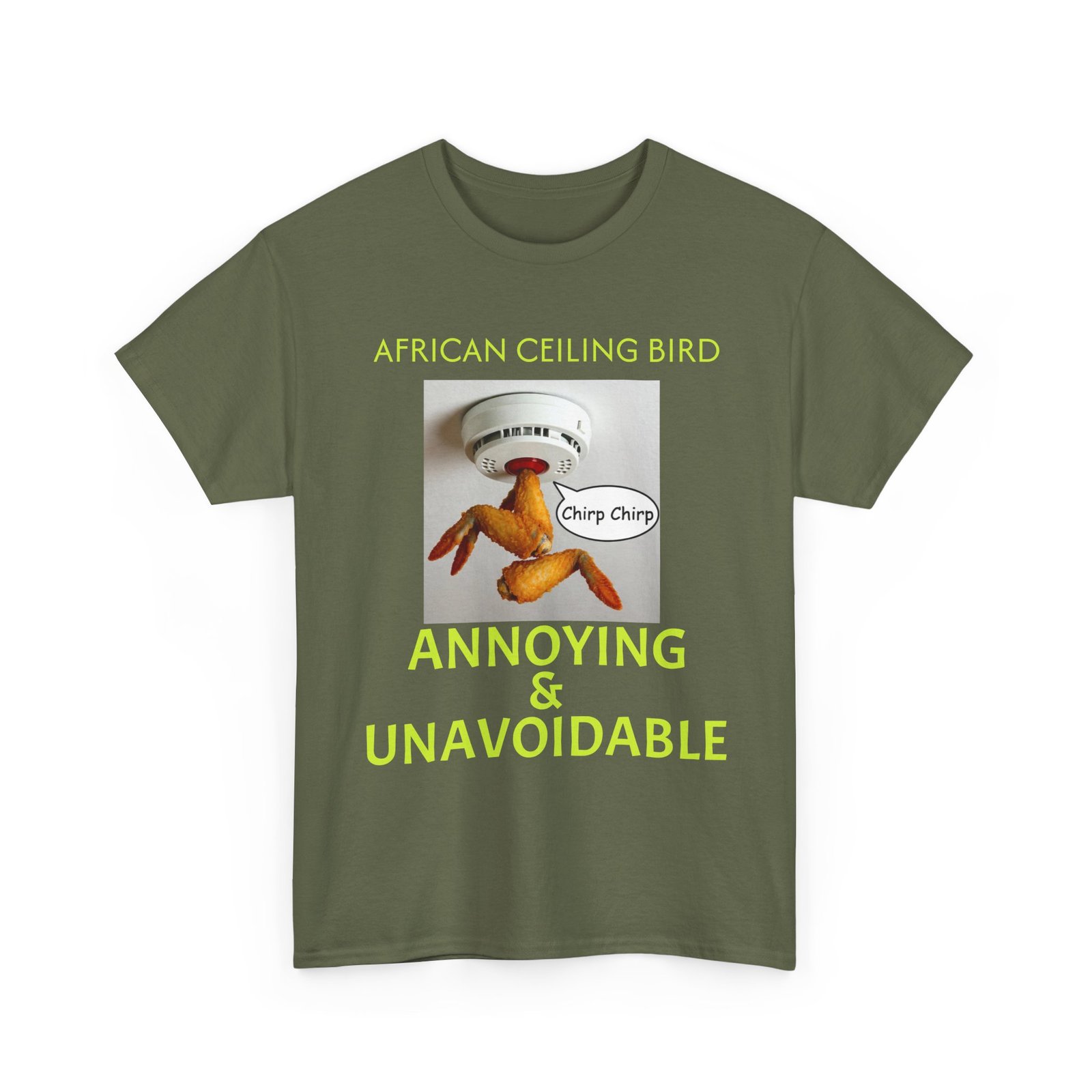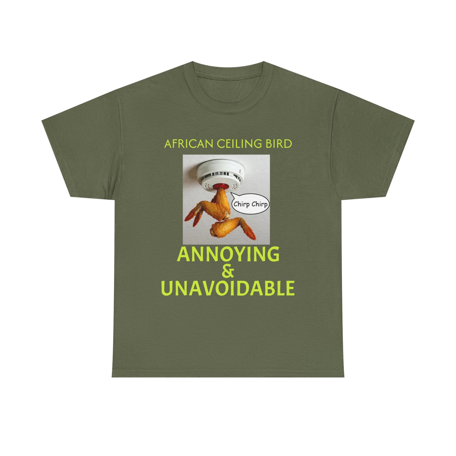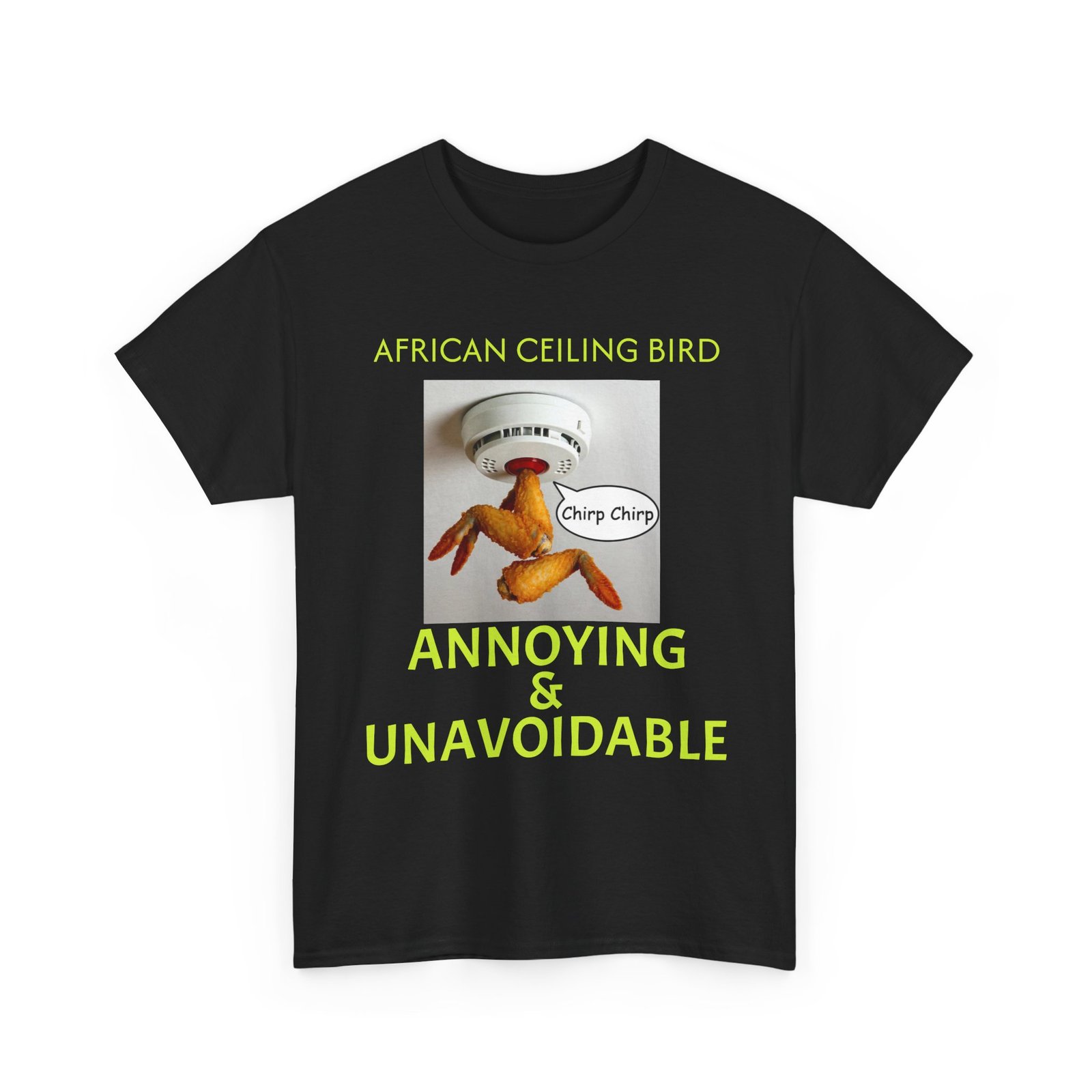 African Ceiling Bird T‑Shirt — “Annoying & Unavoidable” Novelty Tee