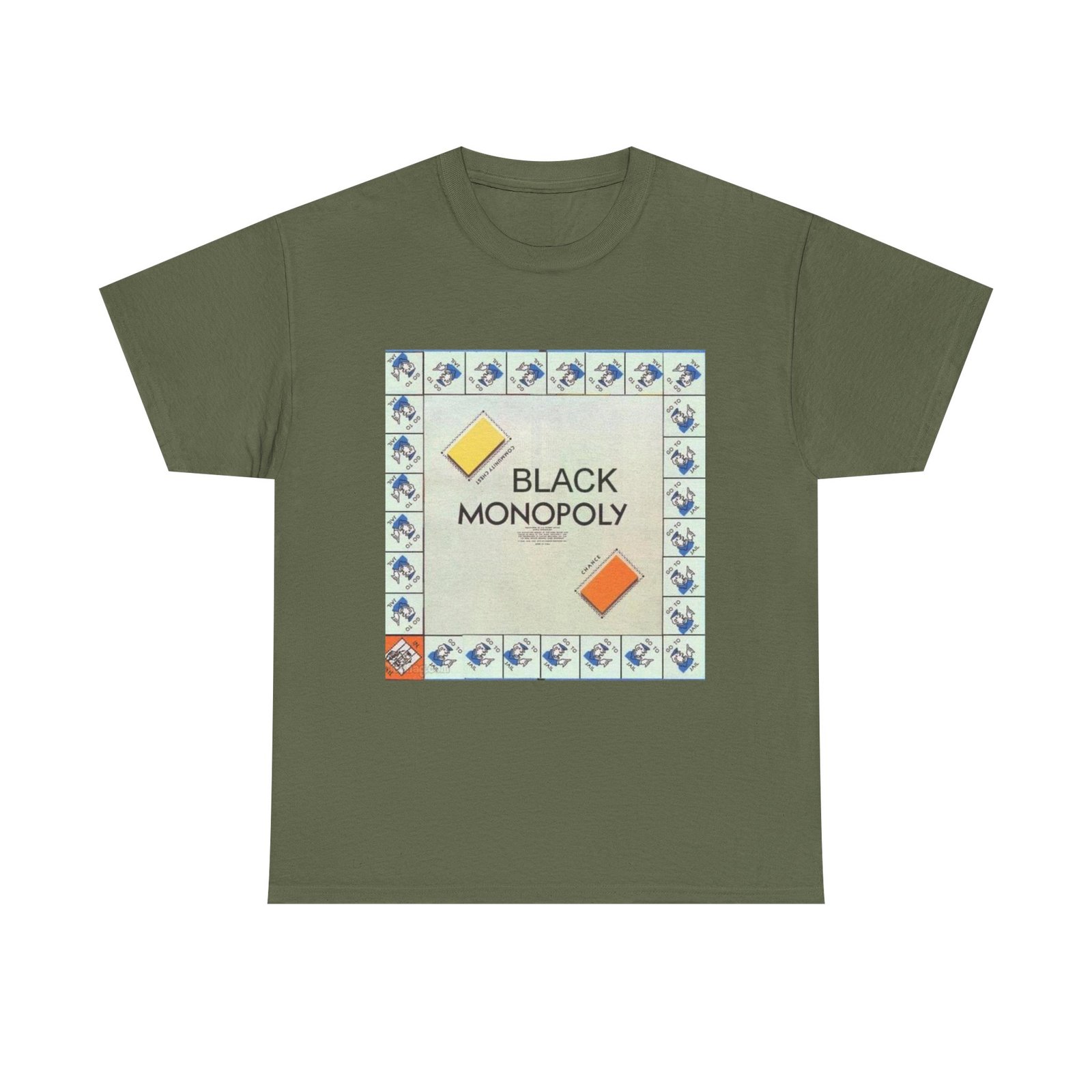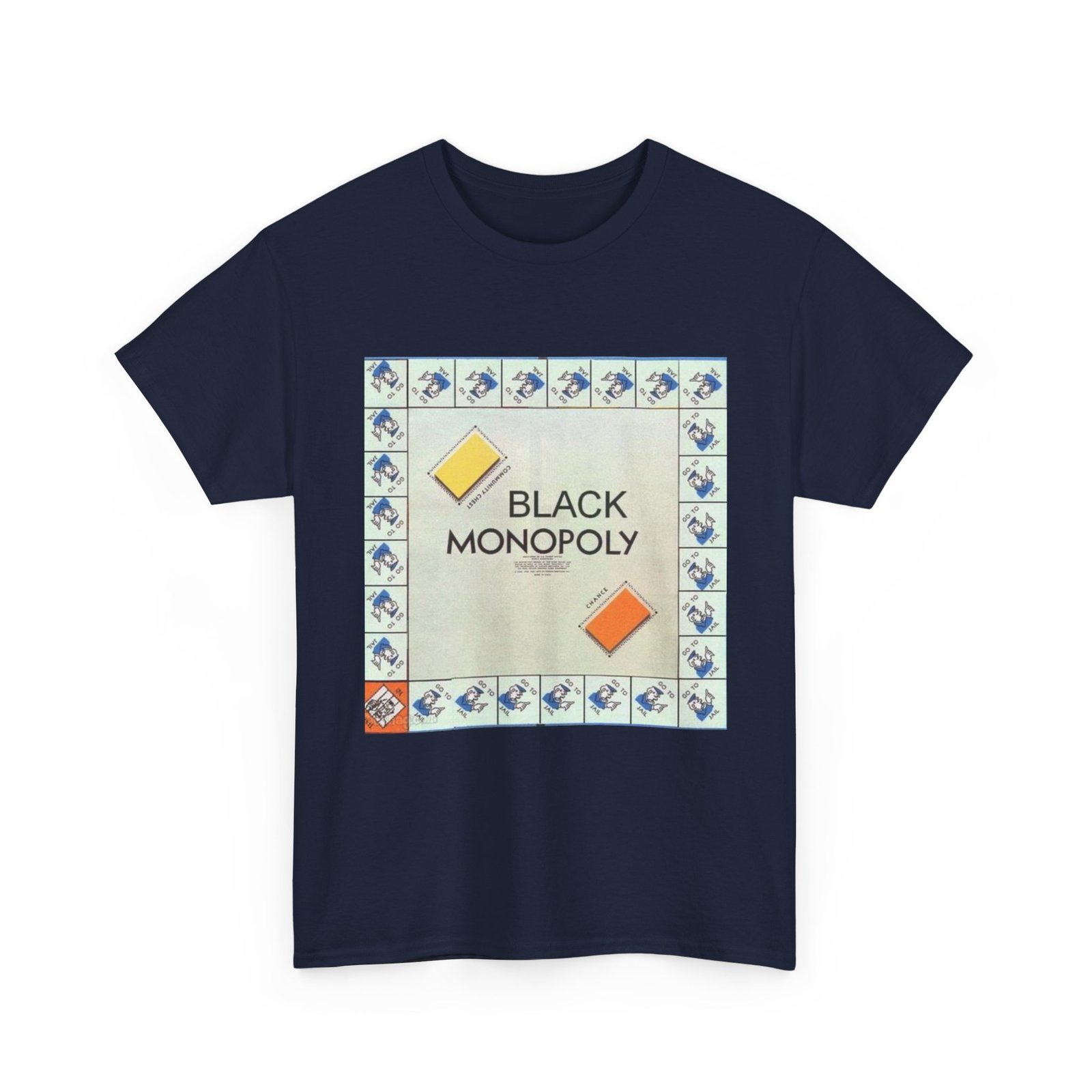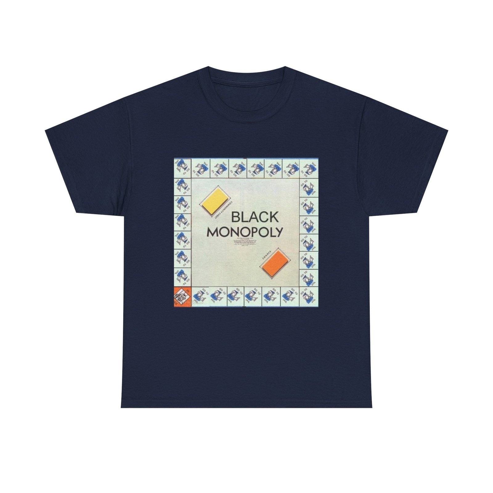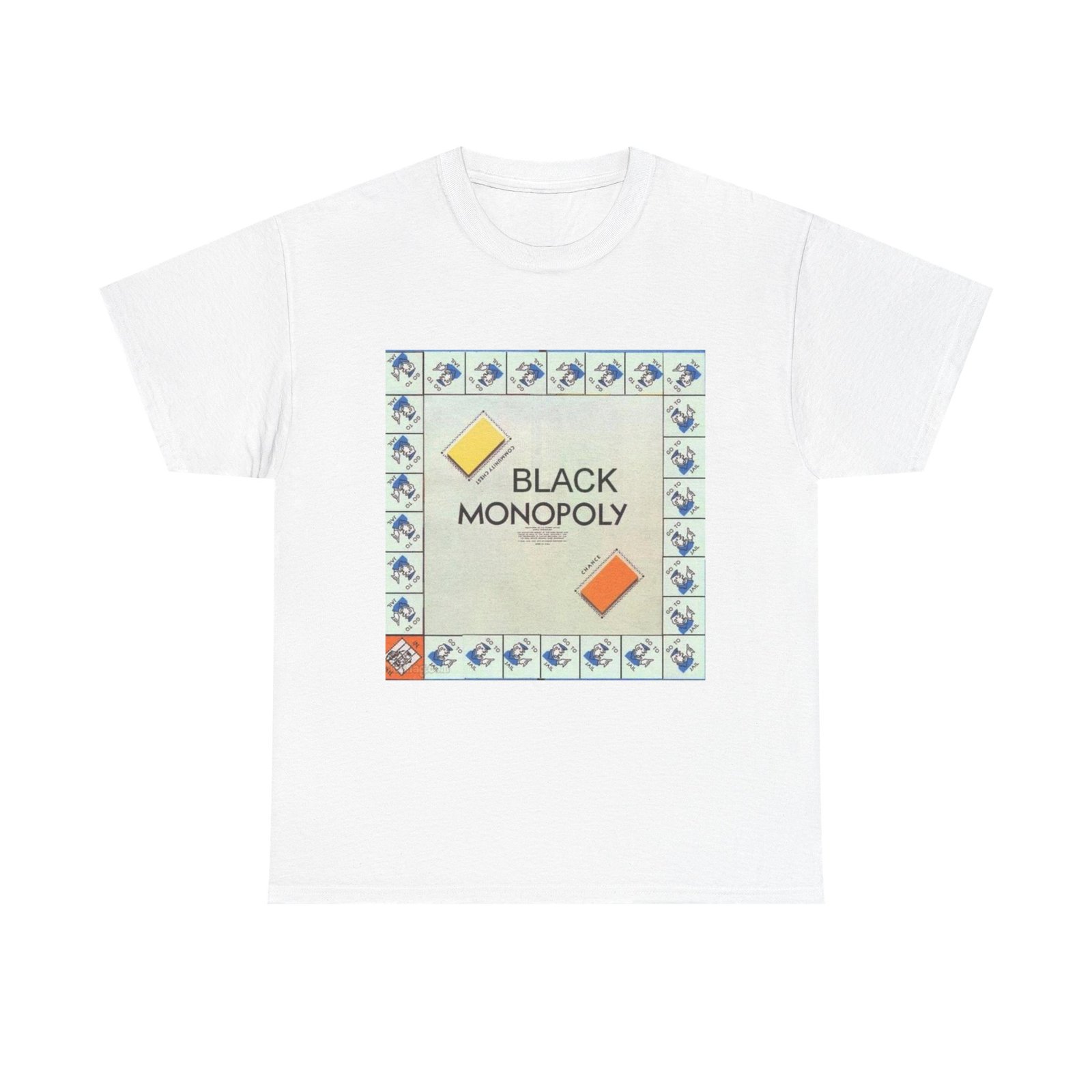 A soft, vintage-inspired cotton tee that carries a playful, nostalgic design. The front features a faded board-game motif with muted colors and the words “BLACK MONOPOLY” framed by repeating small icons, giving the shirt a retro, lived-in look. Lightweight yet durable, the shirt drapes casually and feels worn-in from the first wear. It pairs easily with jeans, layered jackets, or lounge pants and works as a statement piece for someone who likes tongue-in-cheek, culturally aware graphics. The breathable cotton and classic crew neckline make it comfortable for everyday wear; tear-away label and reinforced shoulder tape keep it feeling smooth and well-constructed. This shirt blends nostalgia with subtle humor and stands out without shouting, suited to someone who appreciates vintage styling and playful cultural references.