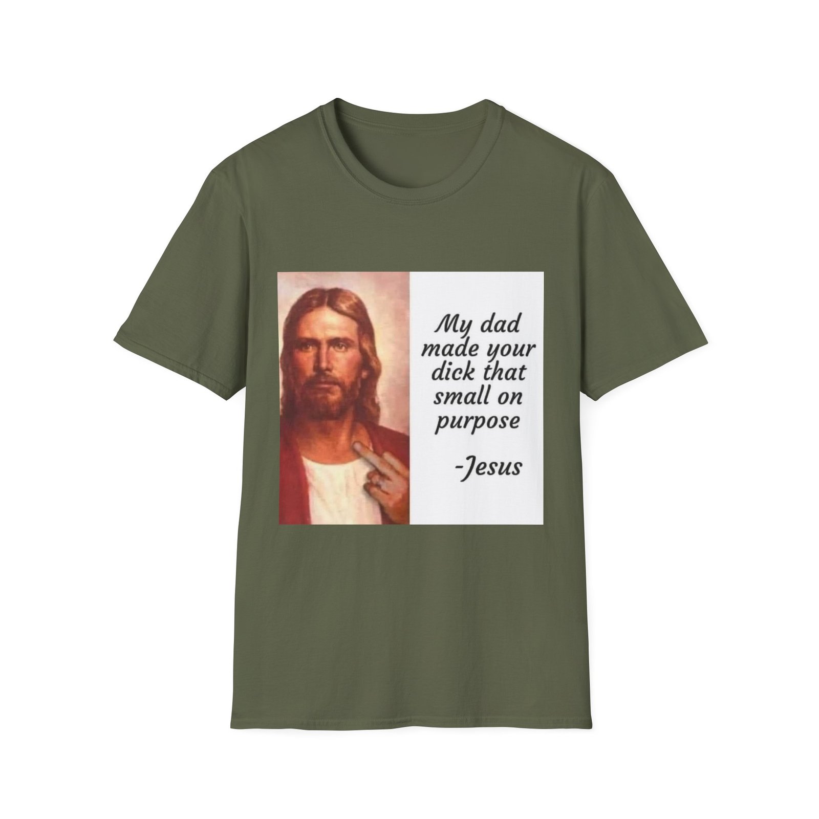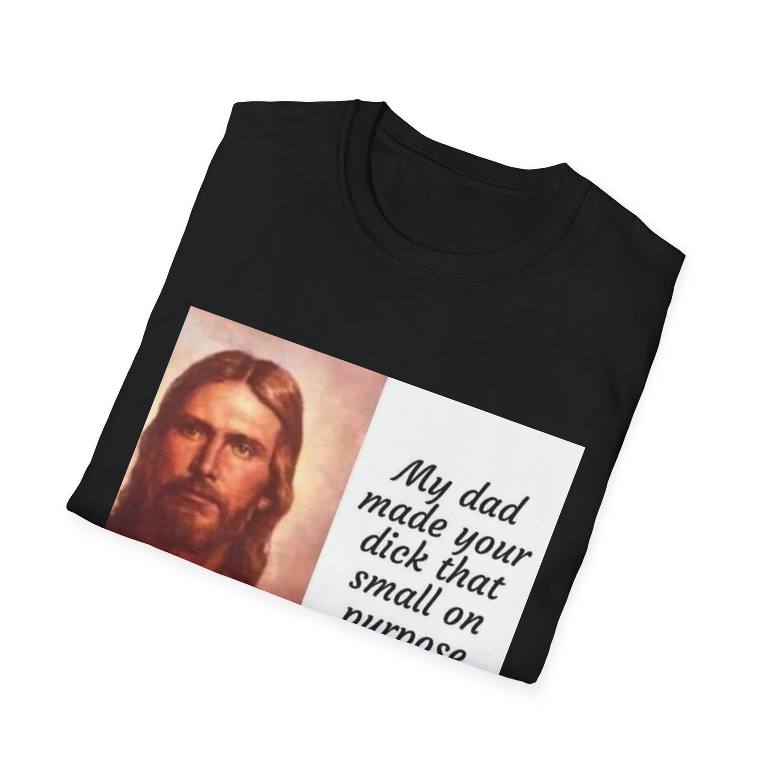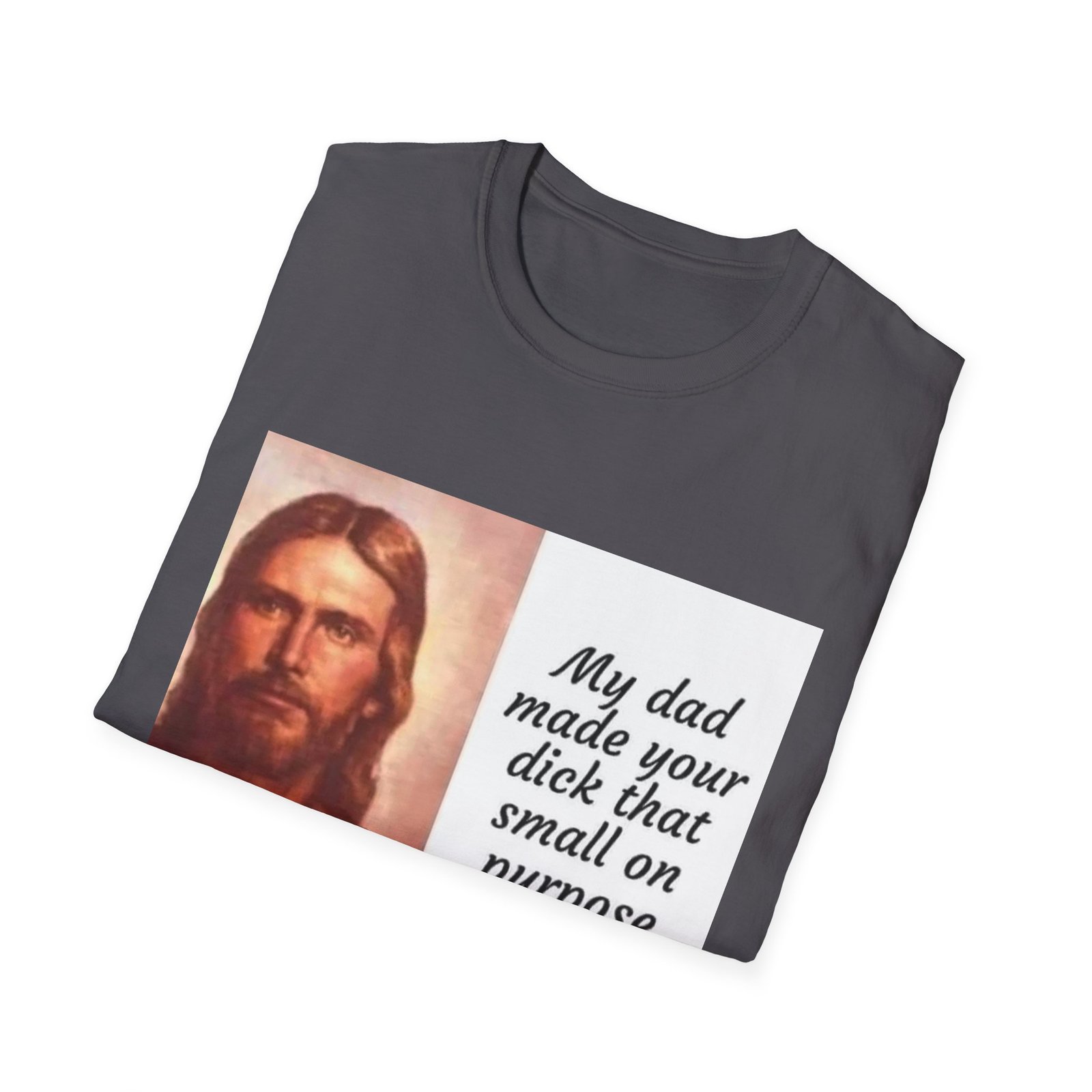 A lightweight, soft-feel tee with a bold, irreverent print that speaks to someone who loves edgy humor and isn’t shy about making a statement. The clean crew neckline and classic fit keep the silhouette relaxed and wearable. The front features a vintage-style portrait paired with a cheeky, hand-lettered quote — a design that starts conversations and leans into provocative, playful sarcasm. Wear it layered under a jacket or solo with jeans for a look that’s casual, loud, and unapologetic.