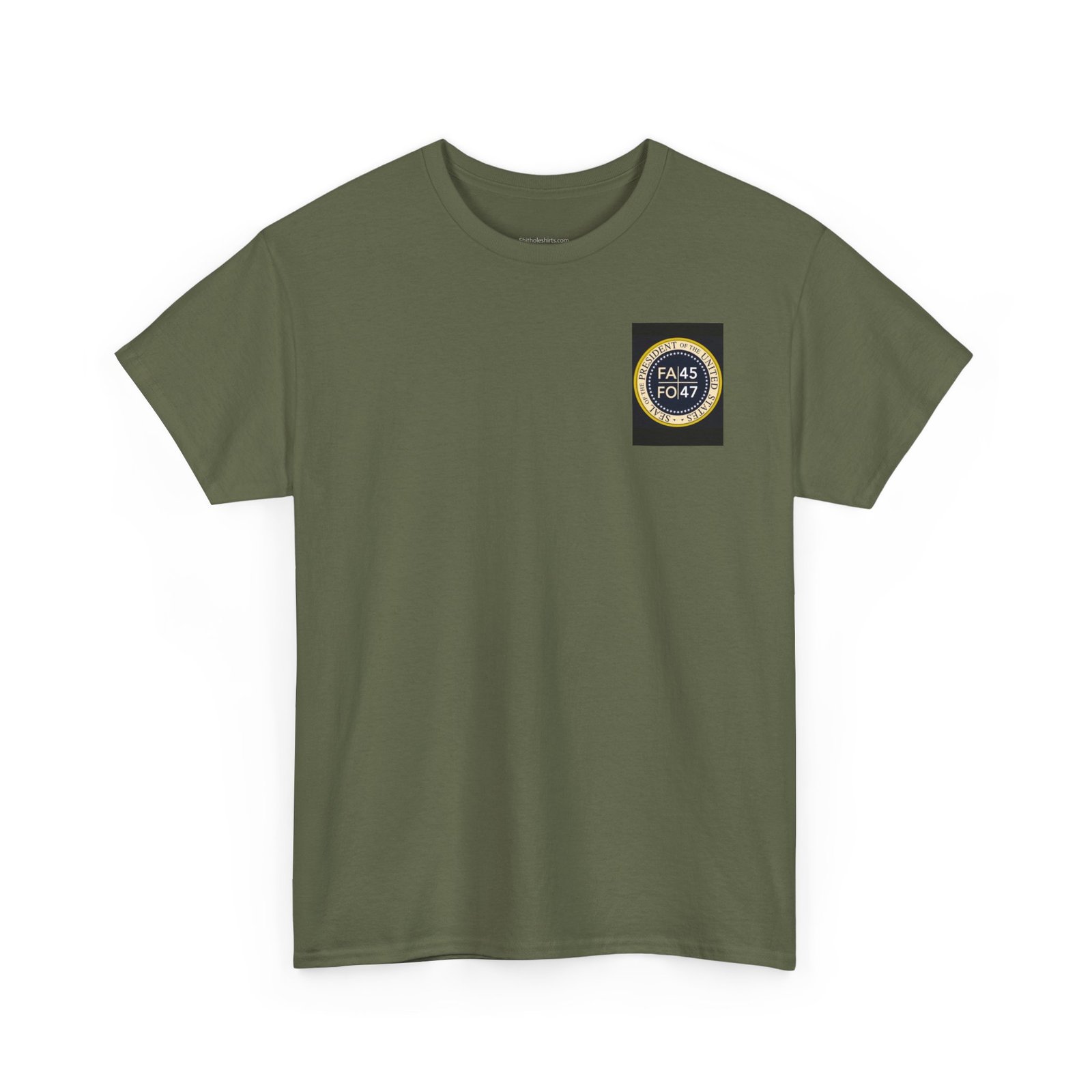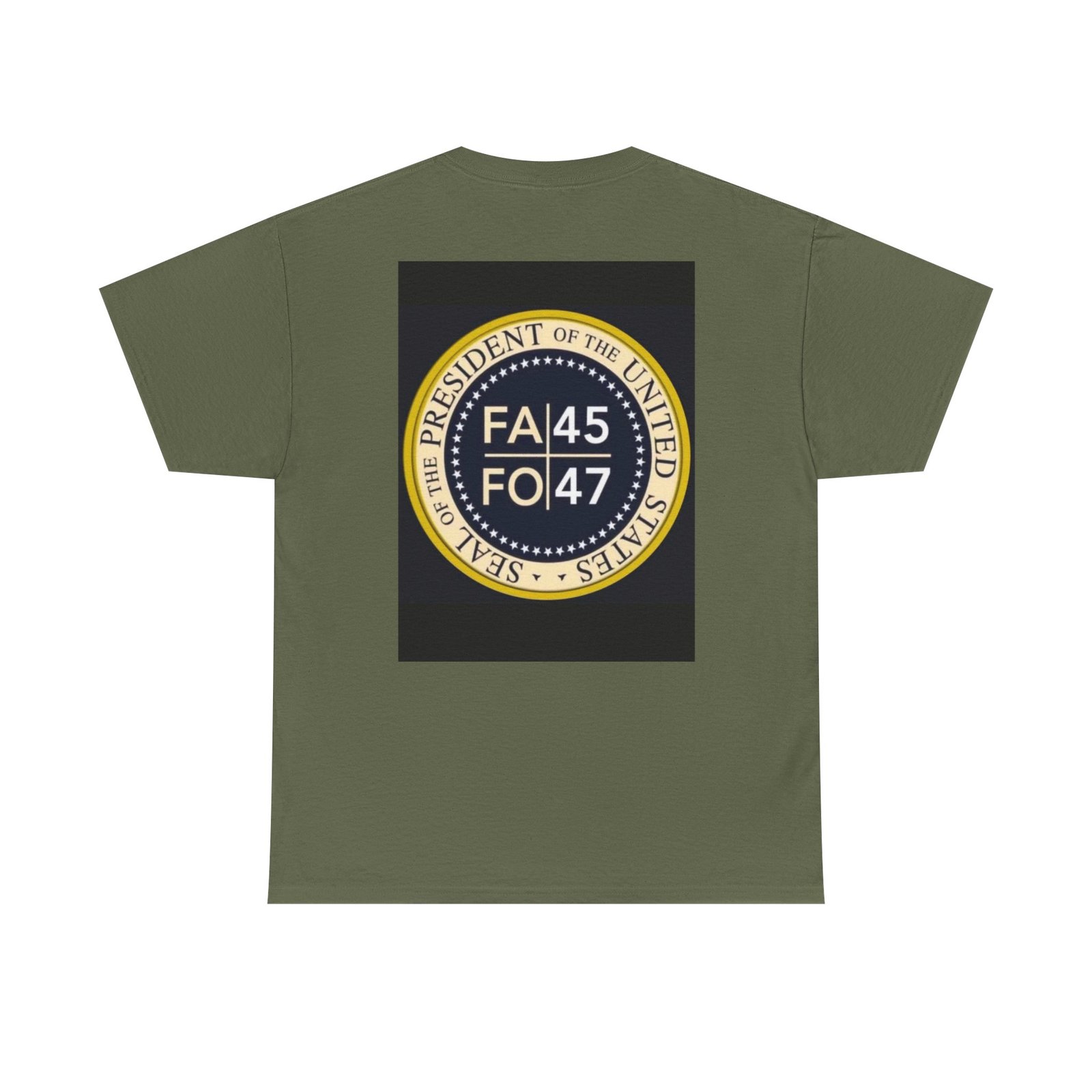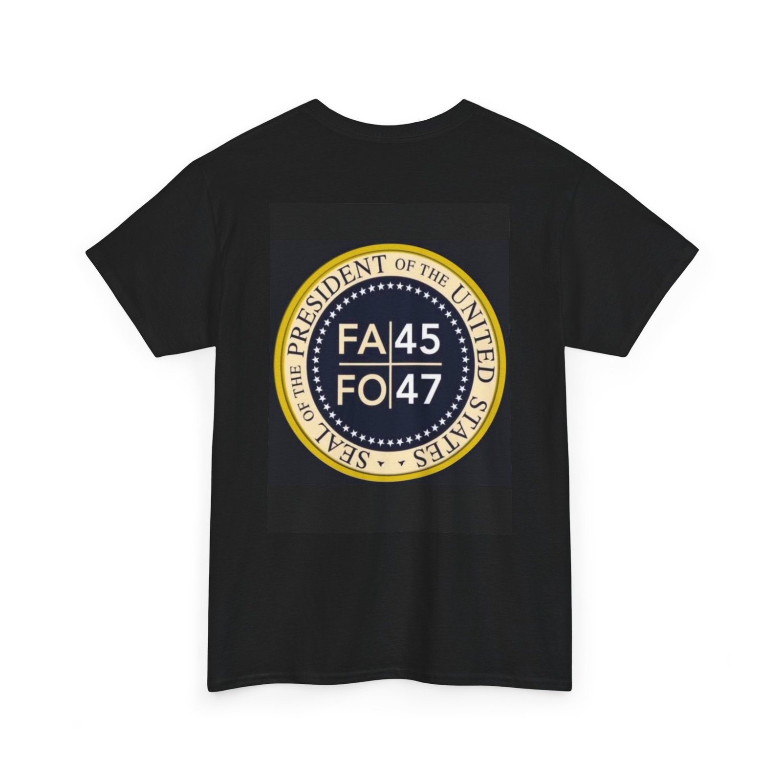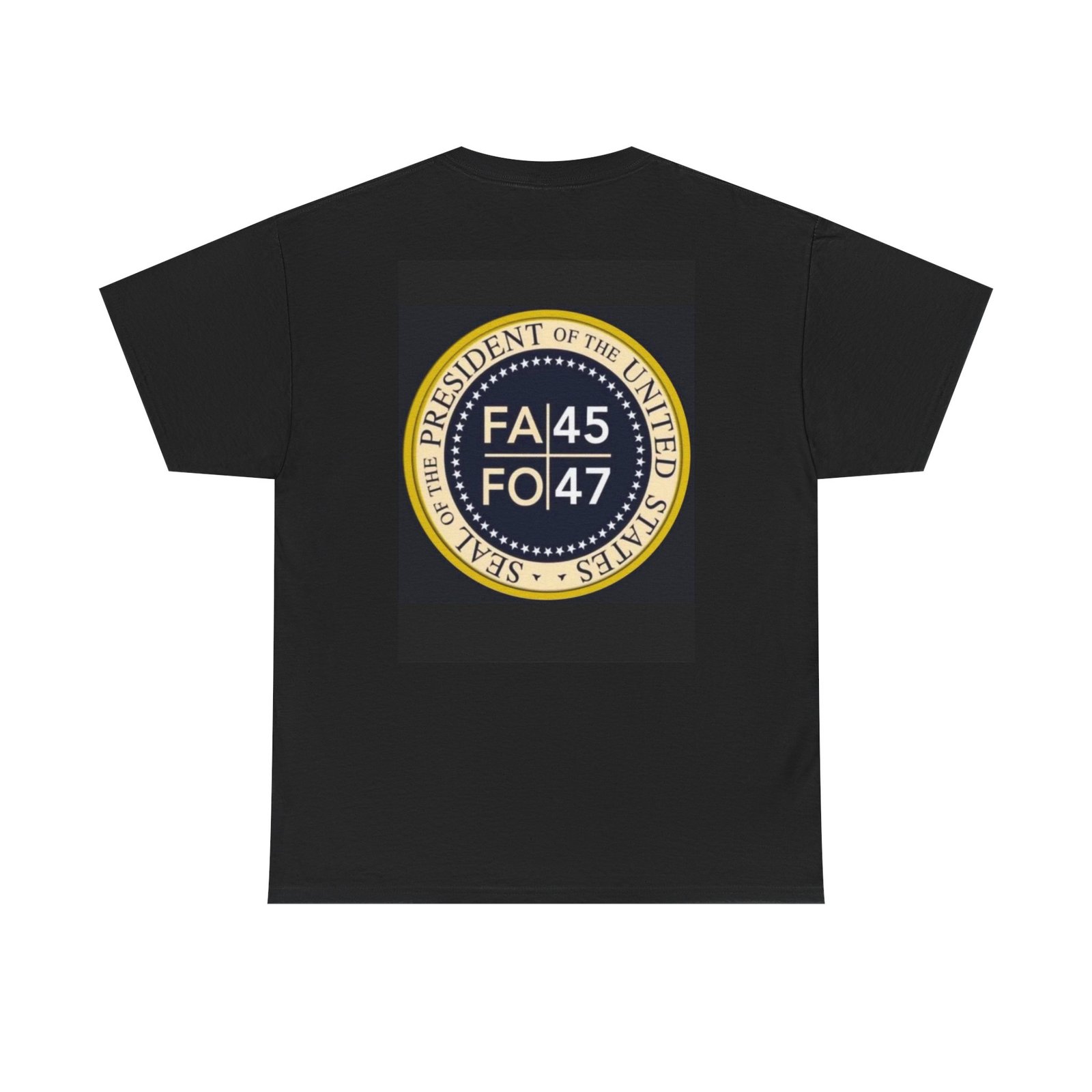 This compact, heavyweight tee carries a bold emblem that sits small over the heart and larger across the back — a graphic that reads like a vintage seal, aged tones of gold and navy on deep black. It wears like a lived-in favorite: sturdy yet soft, with a straight classic cut that stays comfortable through long days and layers easily under jackets. Picture it on someone who likes statement graphics without shouting — the kind of person who collects pins, patches, and quiet insignia that nod to inside jokes or shared history. Wear it to rallies, late-night meetups, or when you want your outfit to quietly announce where you stand. The shirt’s durable cotton and clean construction mean the print keeps its detail wash after wash, and the tear-away label removes any itch so nothing distracts from the message.