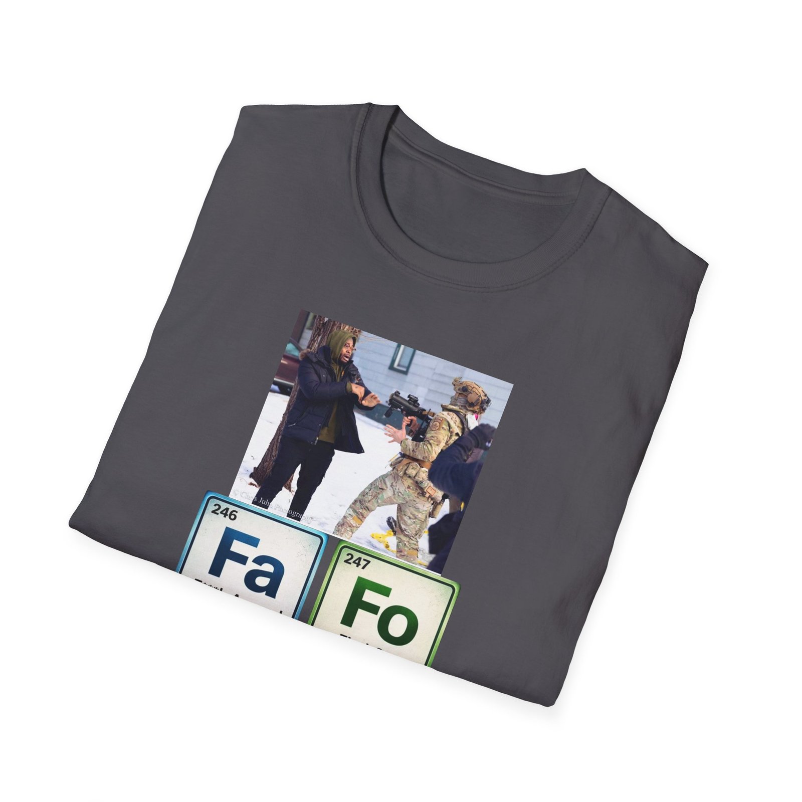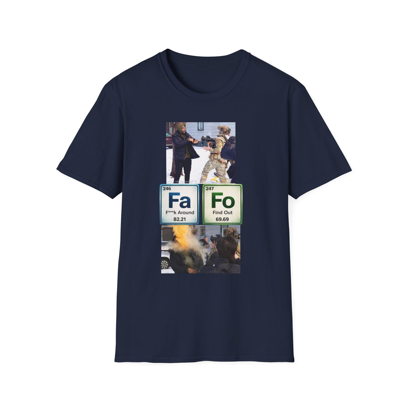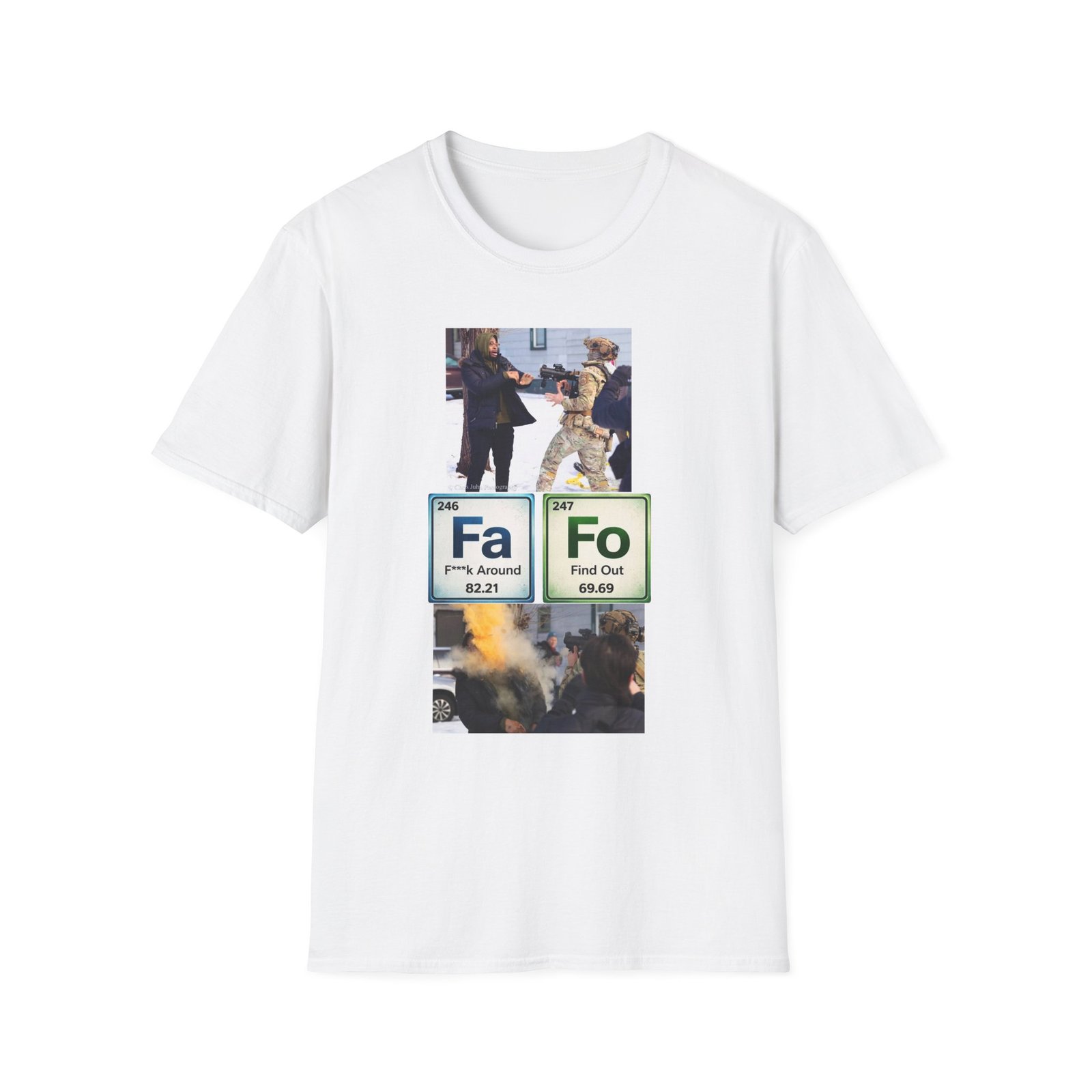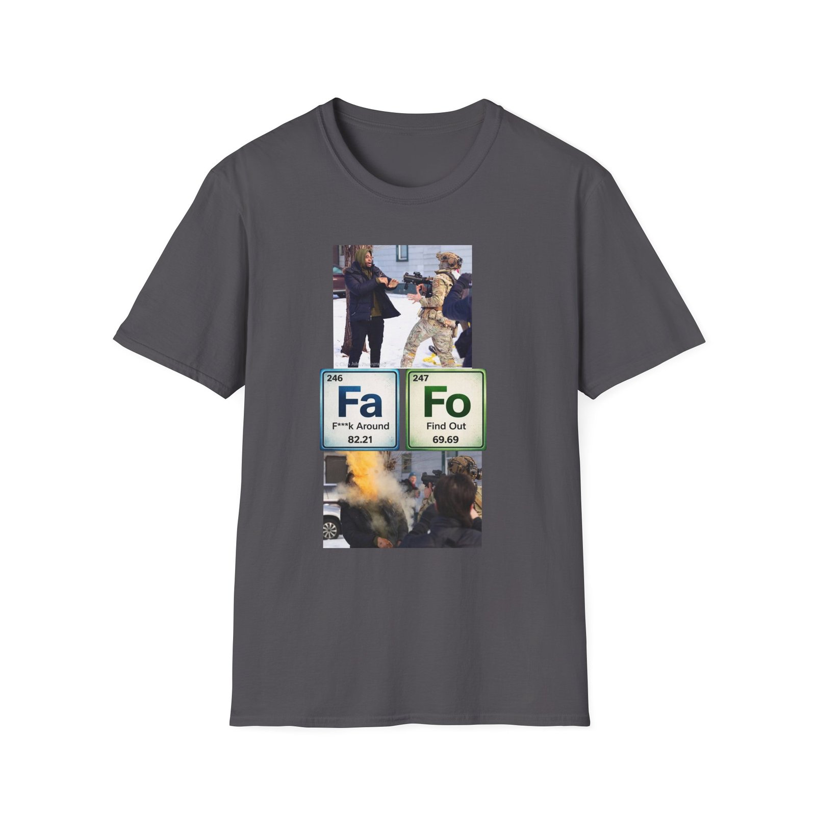 This lightweight crew T-shirt blends everyday comfort with a bold, conversation-starting graphic. Printed on a smooth, ring-spun cotton base, the front features a layered collage style: candid photo scenes framed above and below a pair of element-style tiles labeled “Fa” and “Fo.” The layout has a raw, streetwise energy — like a snapshot diary turned wearable statement. Wear it on city walks, at protests or rallies, or layered under a jacket for evenings out. The soft, breathable fabric keeps you comfortable through long days, while the stable ribbed collar and shoulder tape keep the fit looking sharp. It’s made to move with you — washed, re-worn, and still holding its print and shape.