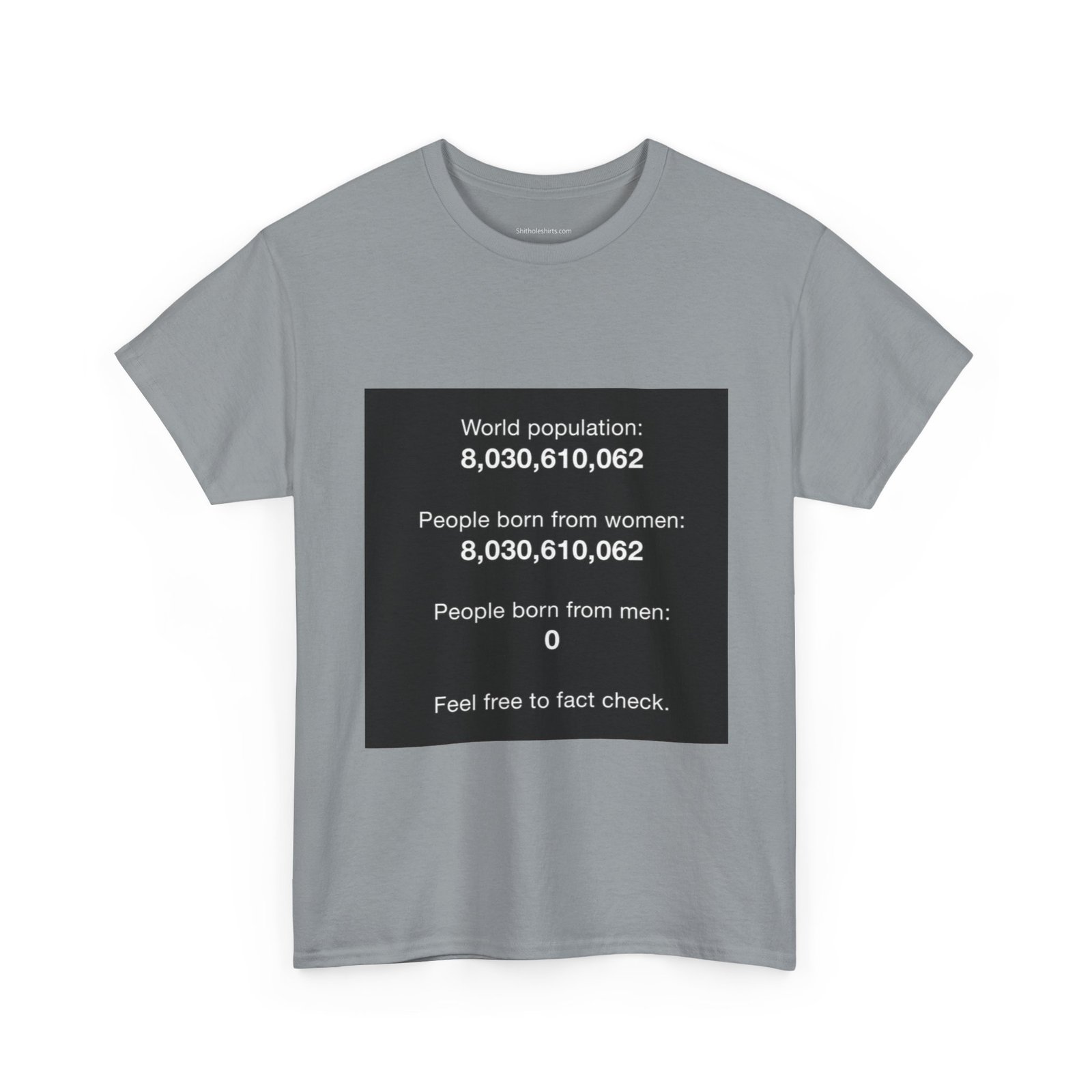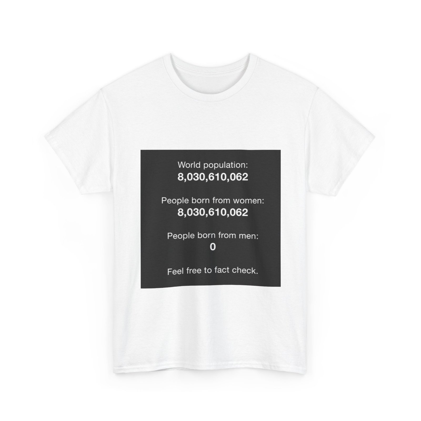 This relaxed cotton tee carries a quiet, clever statement printed on the chest — a minimalist, data-inspired square that invites a double-take and a conversation. Lightweight but sturdy, the shirt wears like a familiar companion: soft against the skin, breathable through long days, and resistant to collar- and shoulder-warp thanks to reinforced construction. It’s for people who like to wear ideas as simply as they wear their favorite jeans — honest, slightly ironic, and thoughtfully made. The clean white canvas keeps the focus on the graphic, while the classic crew neck and roomy cut make it easy to layer or wear on its own. Made with attention to ethical sourcing and durable printing, this tee becomes a reliable part of everyday wear with a message that reads like a quiet fact-check.