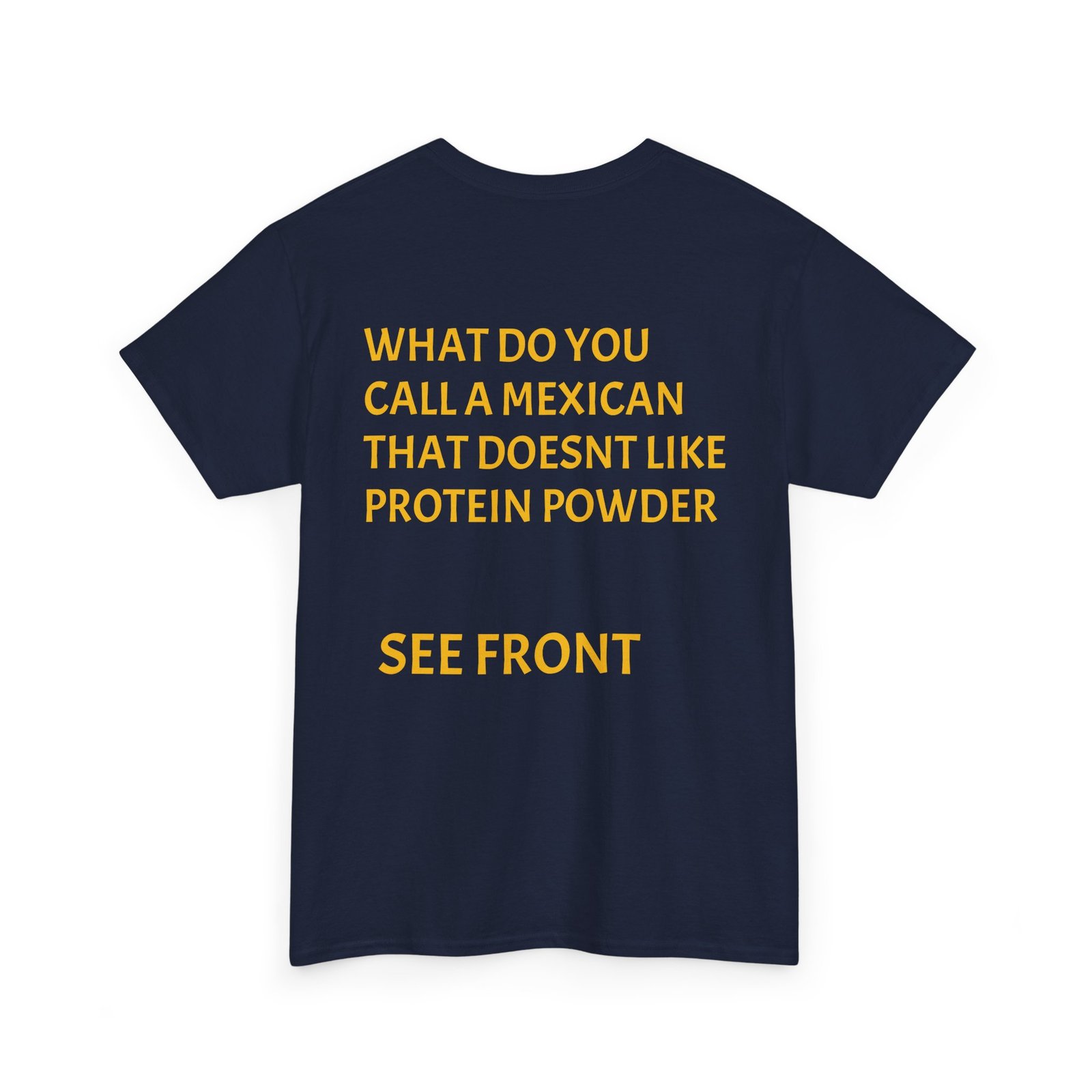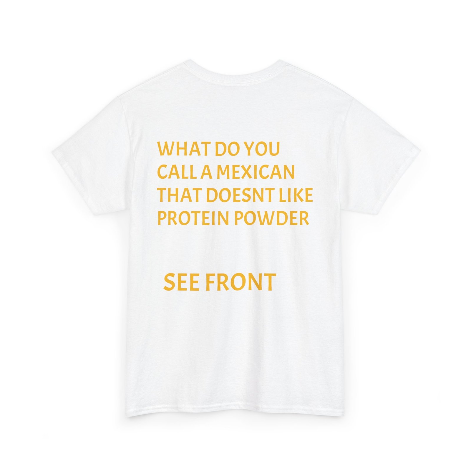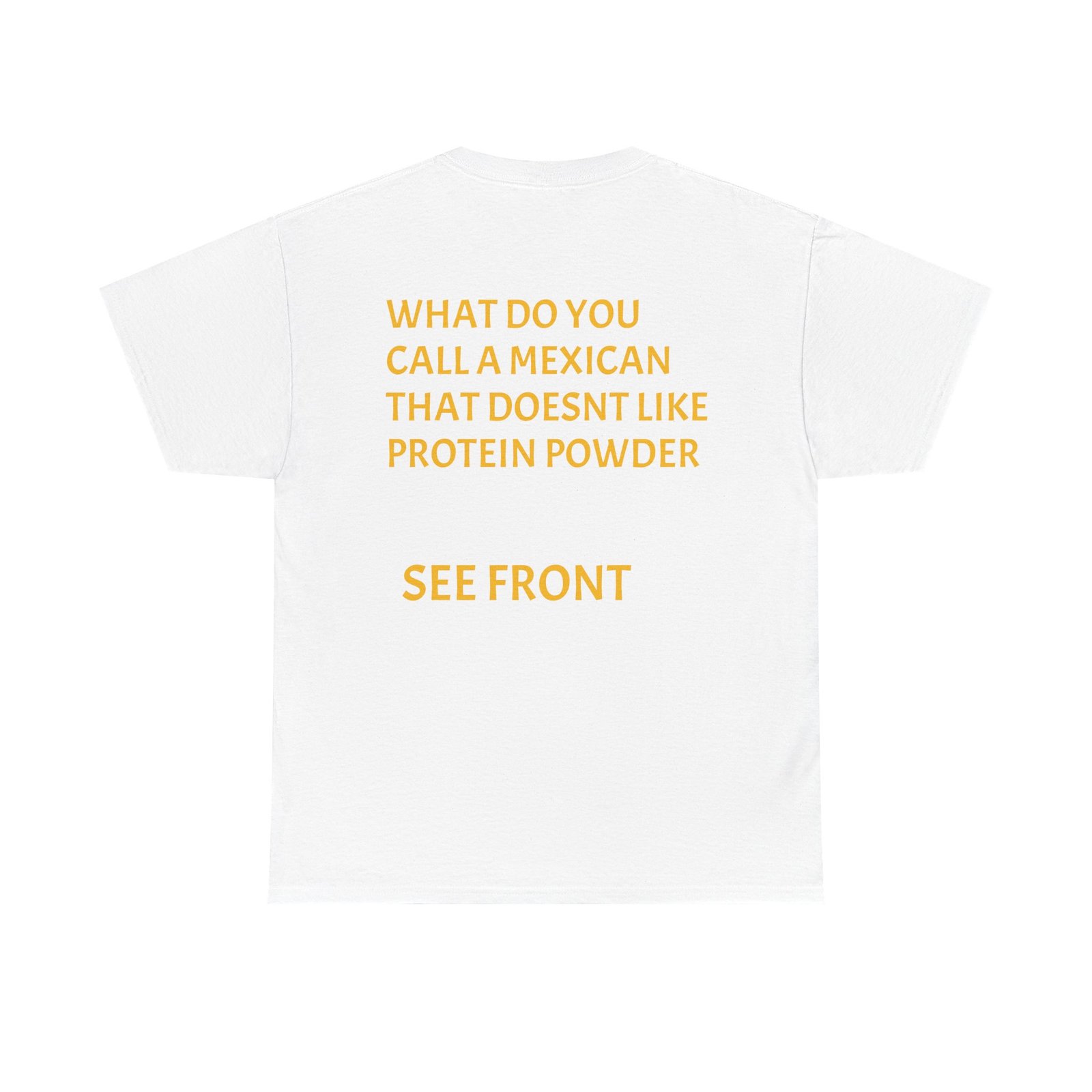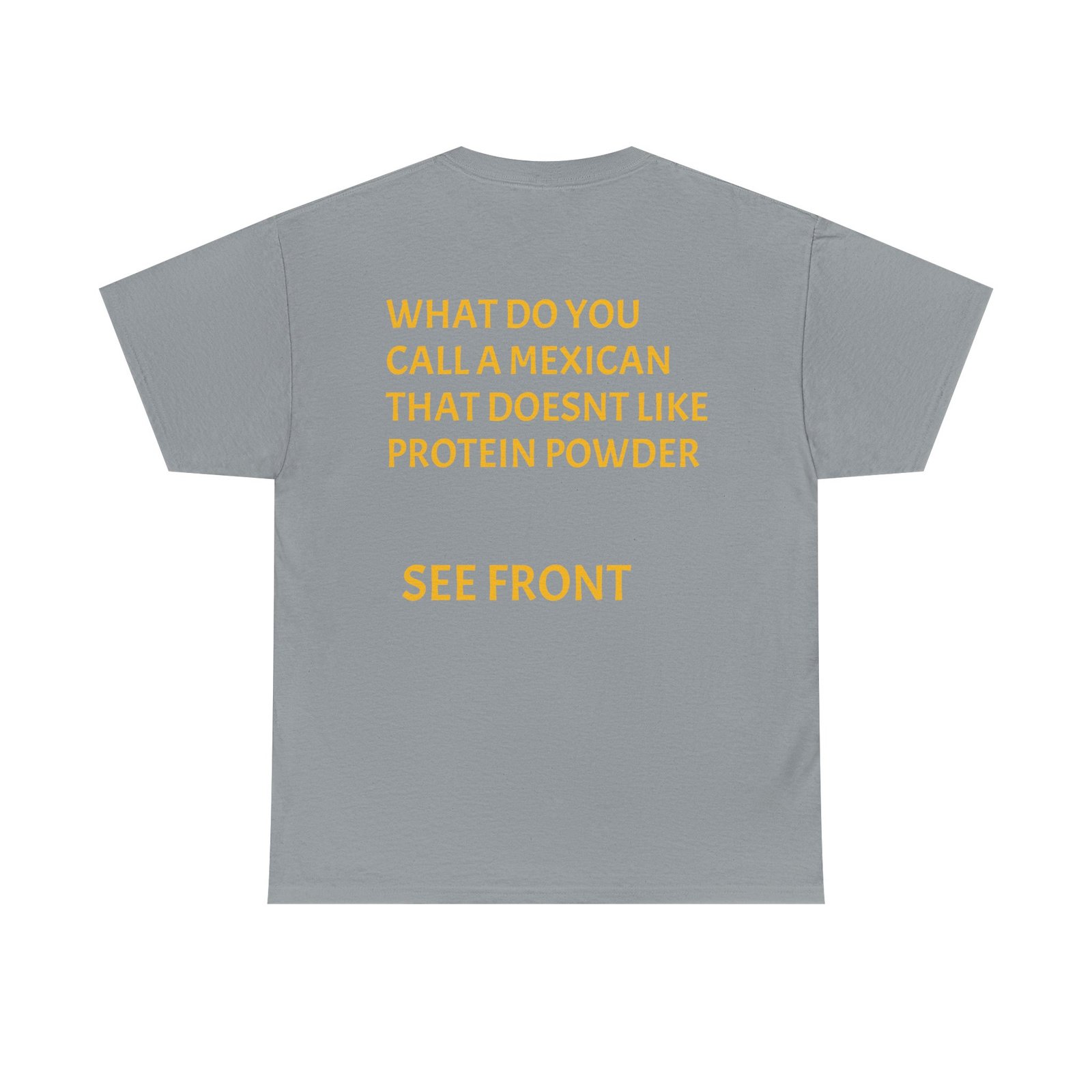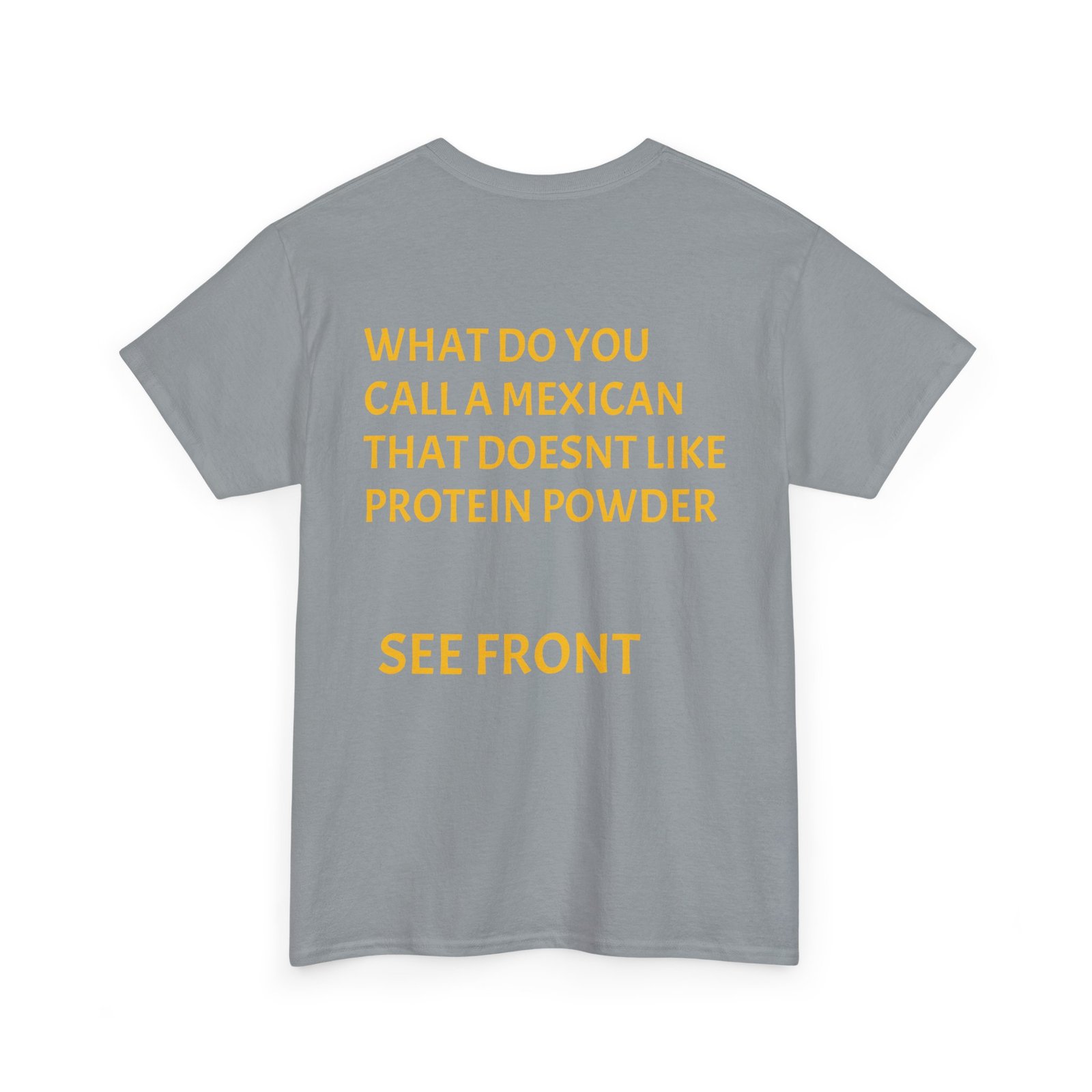 This relaxed crewneck tee wears like a wink and a joke — made to be worn by someone who enjoys gym humor and lighthearted, cheeky banter. The front pairs bold block text with playful graphics; the back continues the joke with a punchline laid out in clean, readable type. It’s soft enough for everyday wear, holds up to washes, and lays flat under a jacket or over gym shorts. The overall mood is playful and slightly irreverent — a conversation starter that lands at casual meetups, post-workout hangs, and chill weekends.