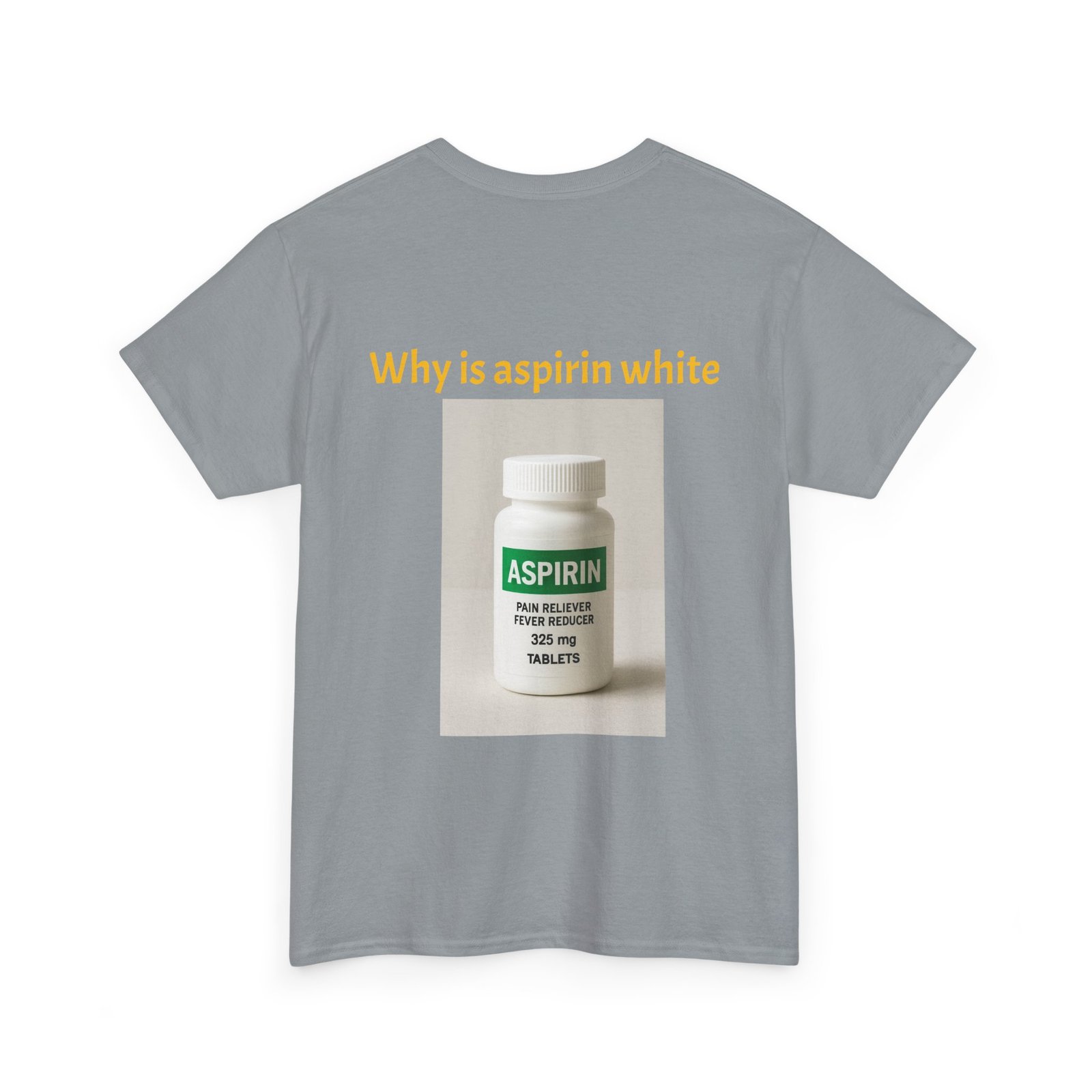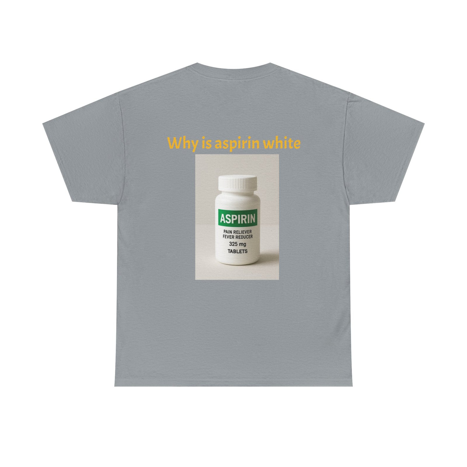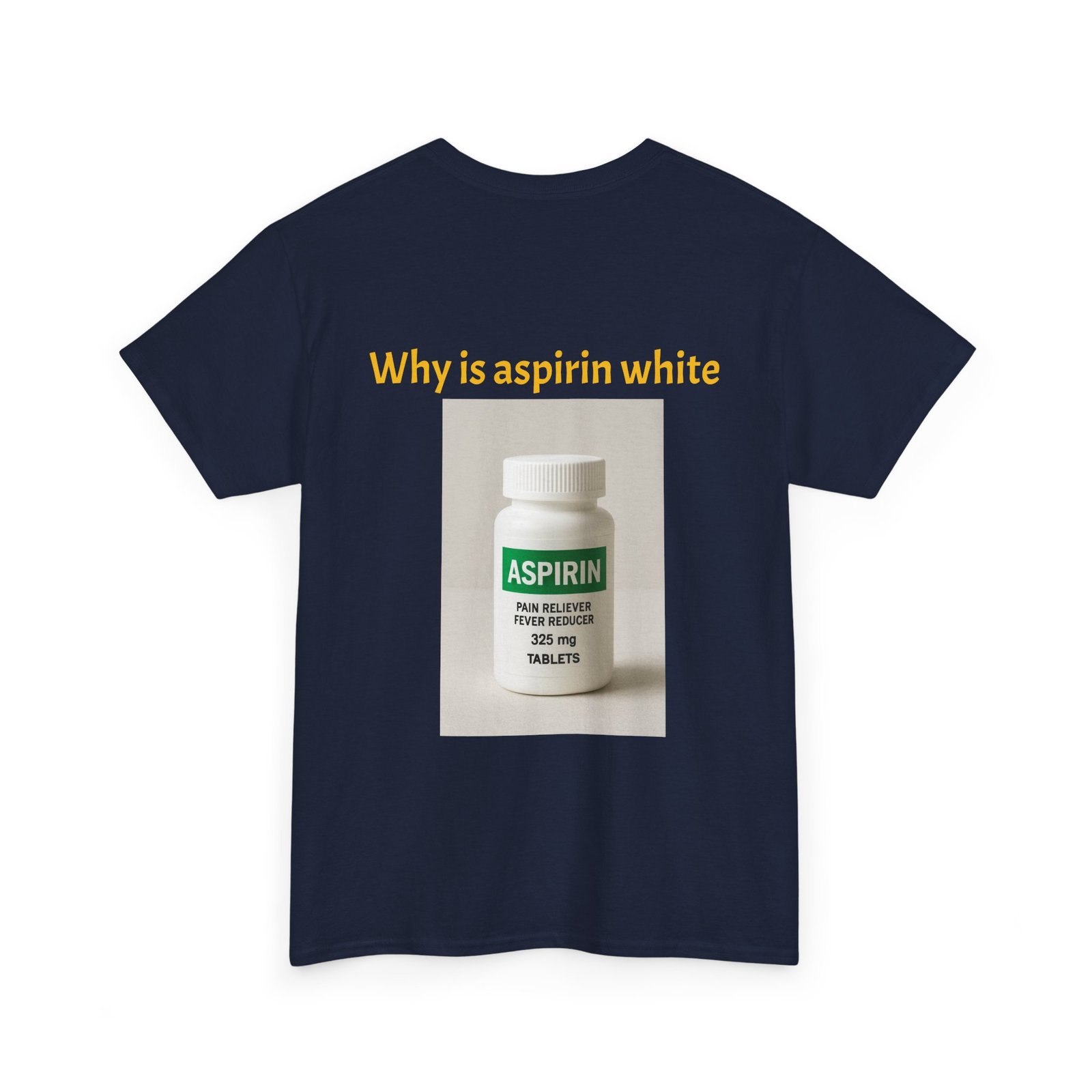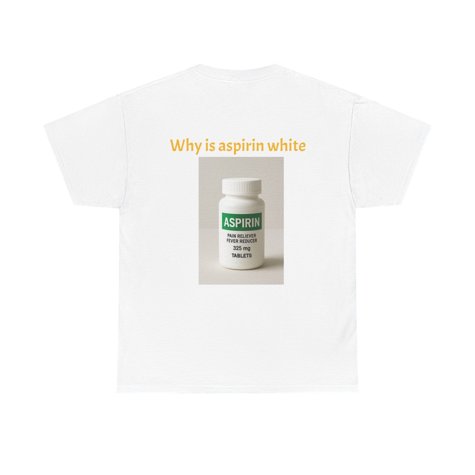 Be the first to review “Graphic Tee — Surprised Face & ‘Why is aspirin white’ Photo Print”