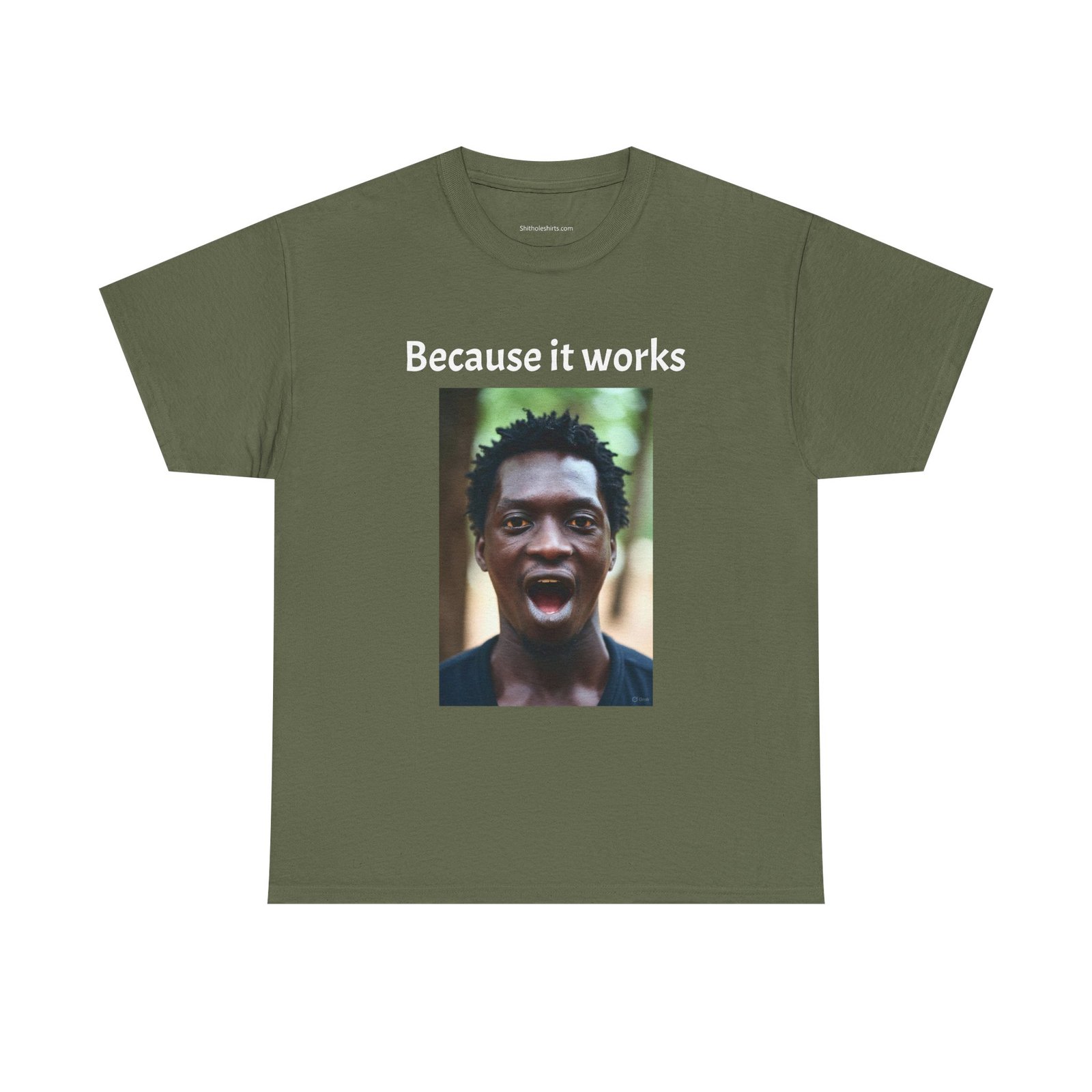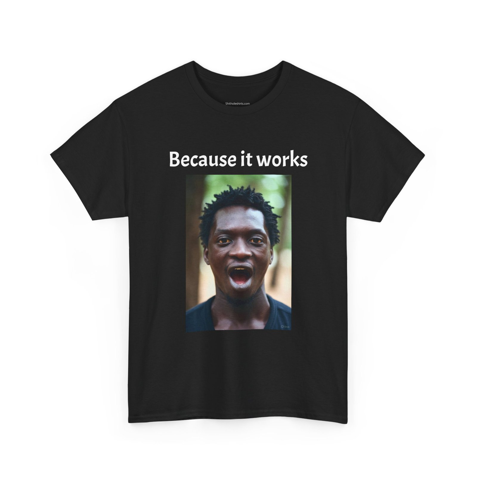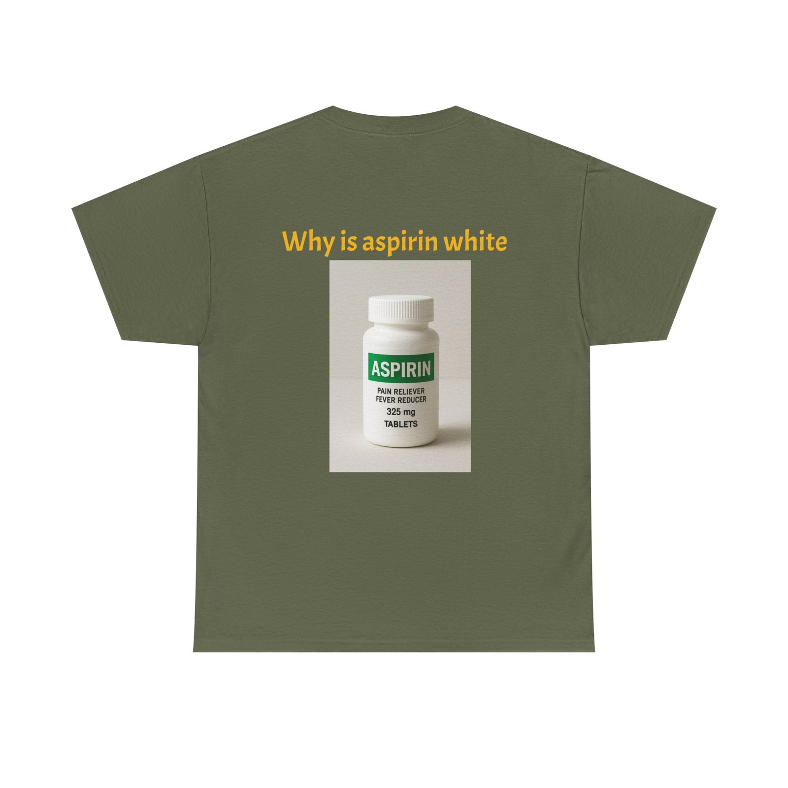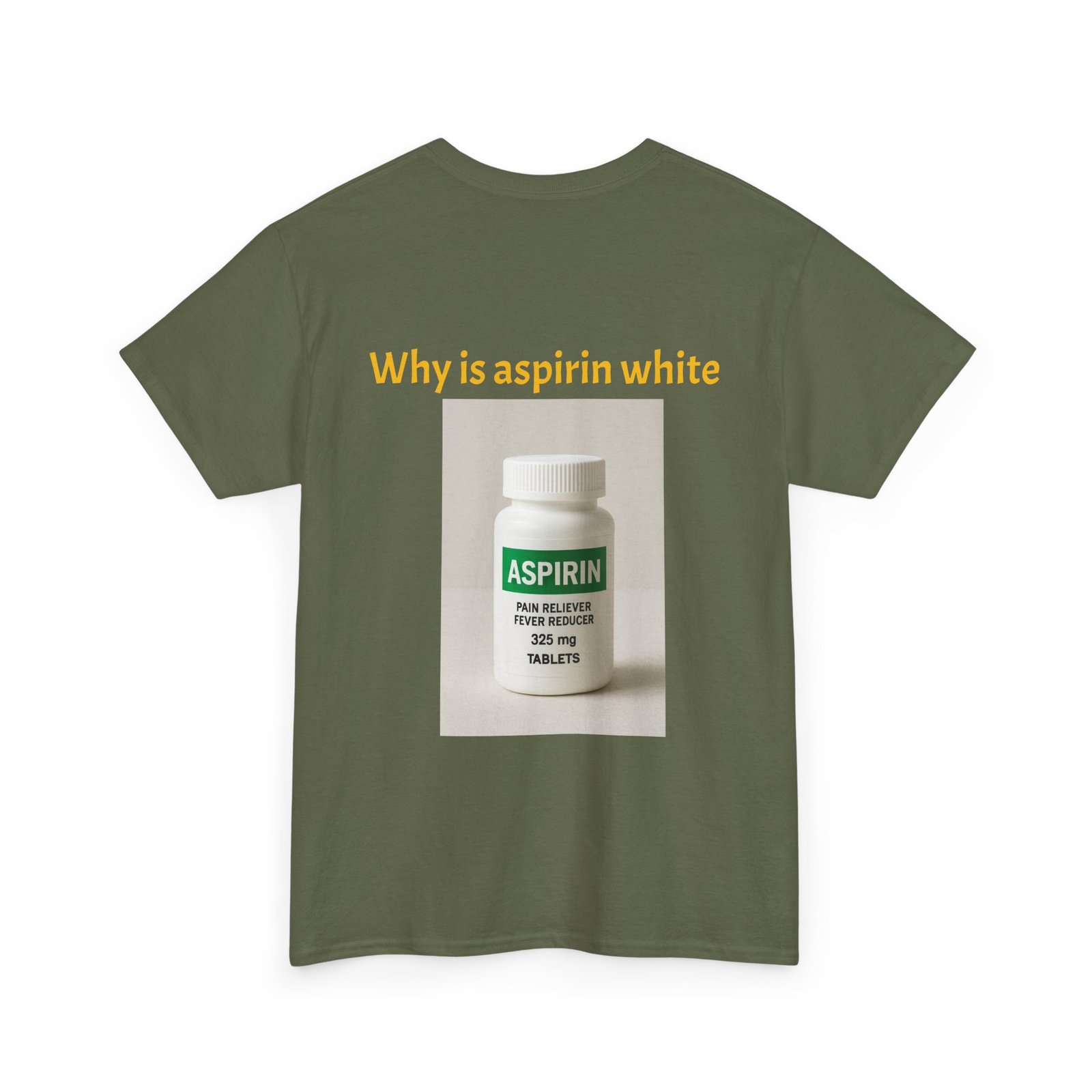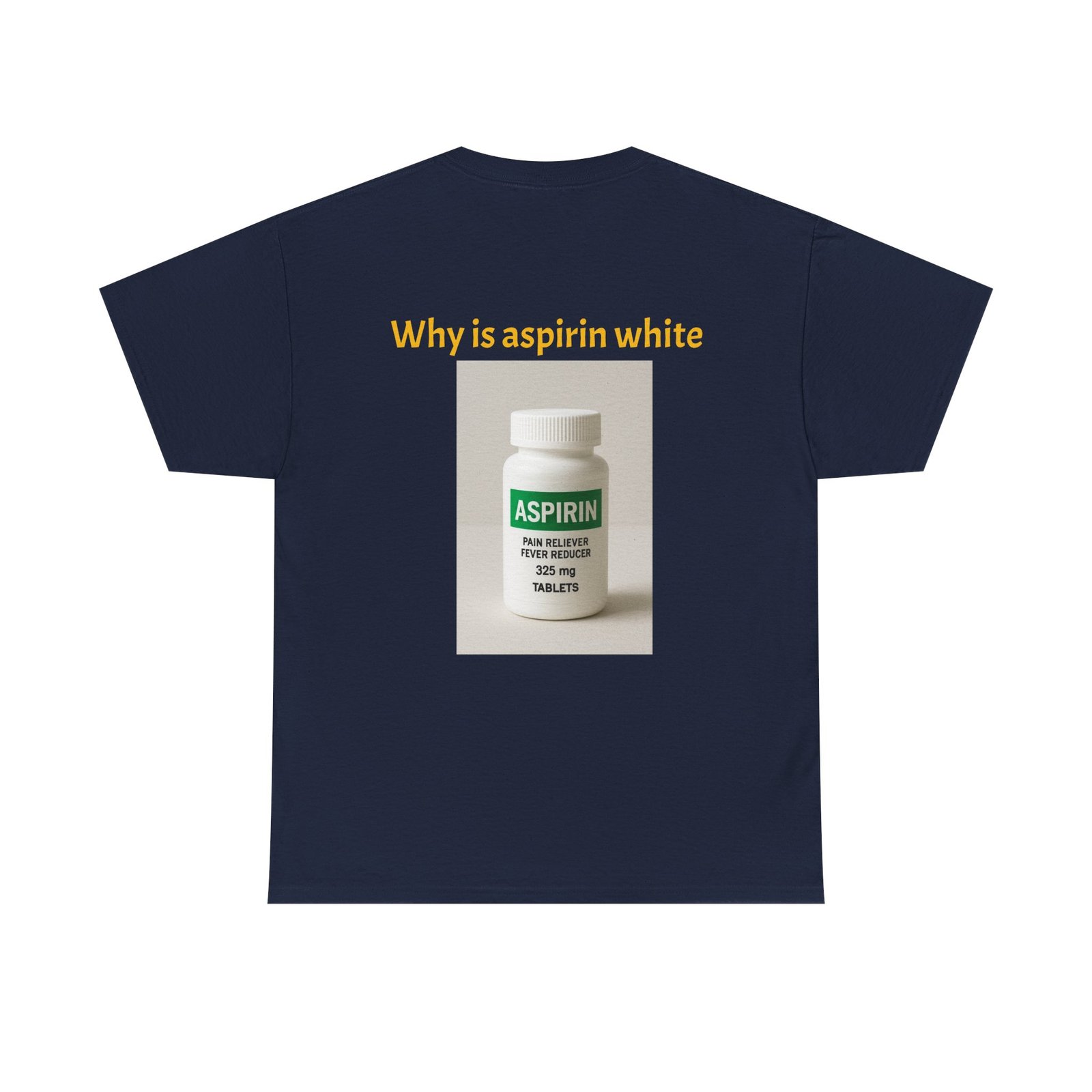 Be the first to review “Graphic Tee — Surprised Face & ‘Why is aspirin white’ Photo Print”