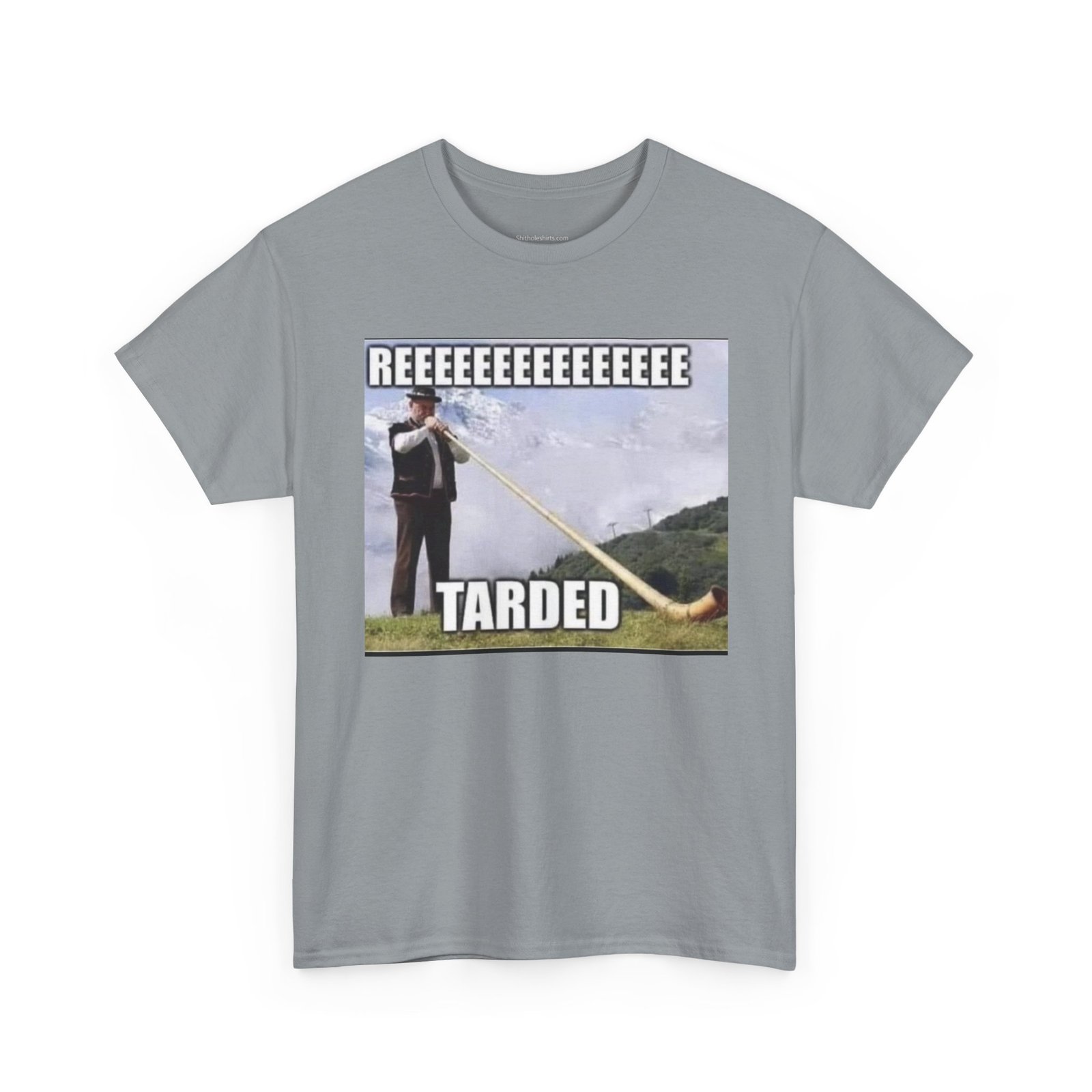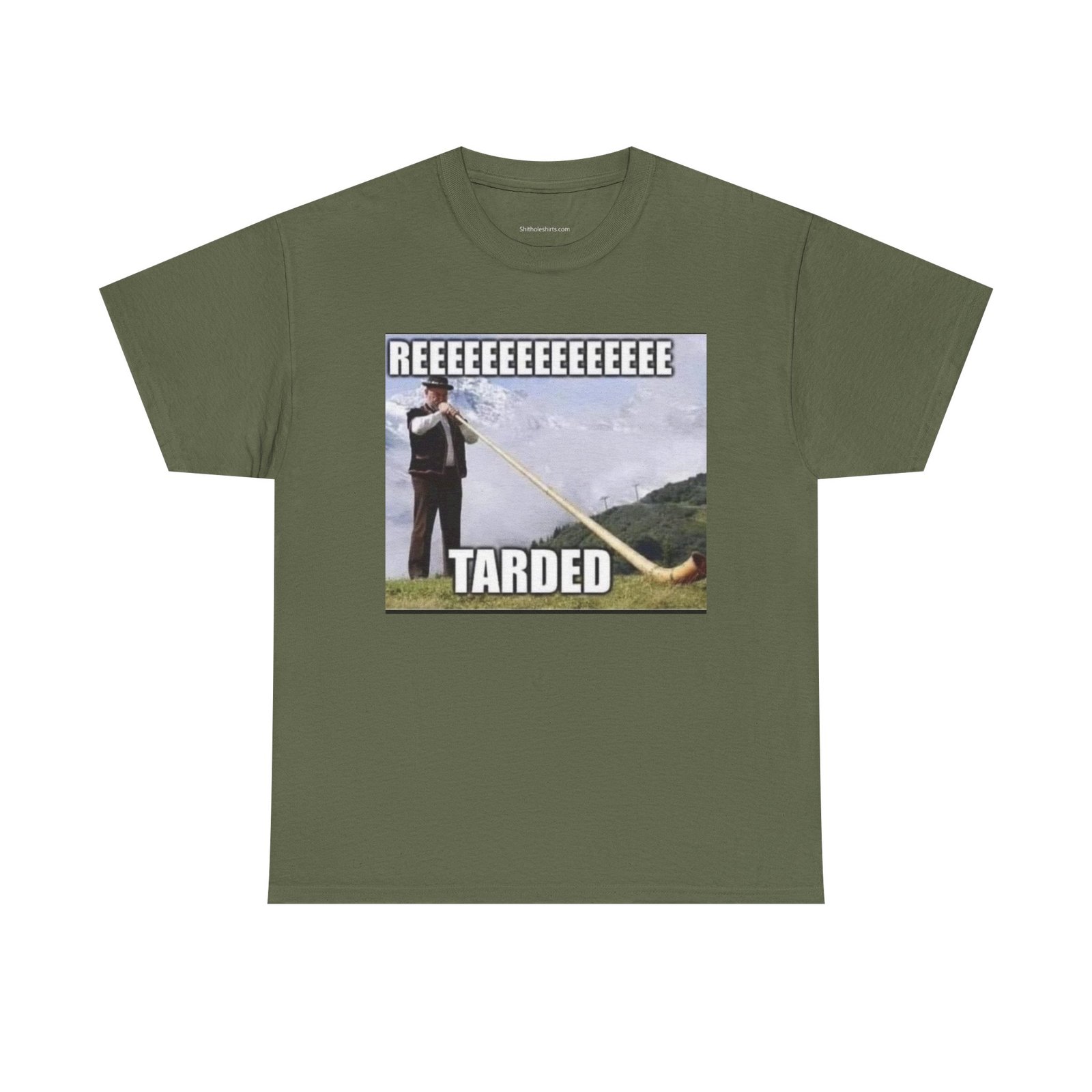 A relaxed, everyday cotton tee printed with a bold meme-style graphic that leans into ironic internet humor. The front shows a vintage pastoral scene overlaid with blocky white text and a neon green line of smaller copy beneath — a look that reads like a joke pasted from an online forum straight onto your shirt. Soft, breathable cotton and a classic crew cut make it easy to wear all day. It sits casually at the hips and layers well under hoodies or jackets when you want to keep the graphic front-and-center. Wear it to chill with friends, run errands, or bring a little absurdity to game night or a casual meetup.