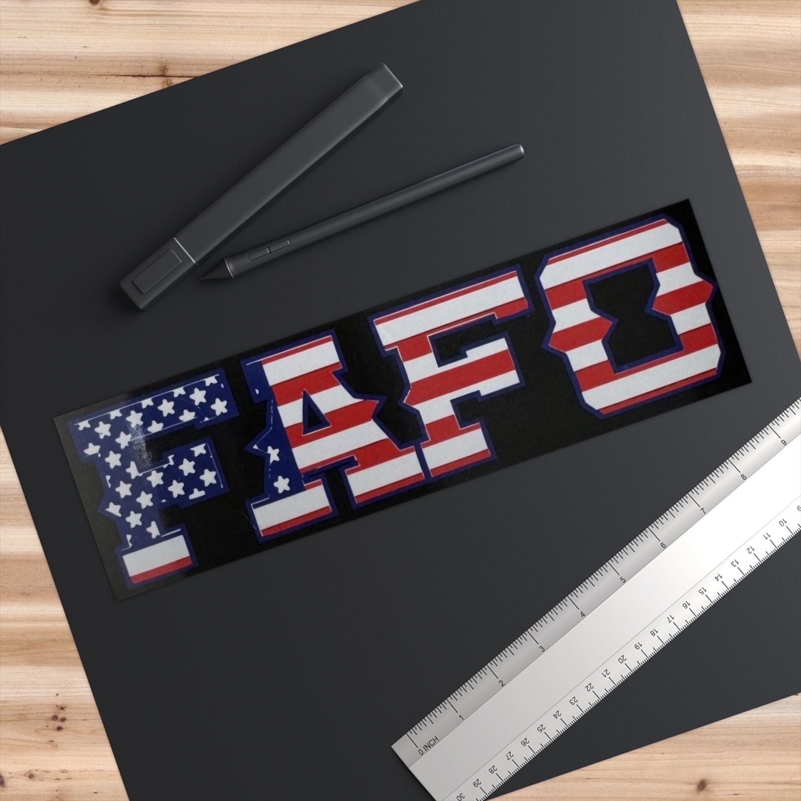 These matte-finish bumper stickers carry a bold, Americana look — letters filled with the U.S. flag that read across as a compact, eye-catching block. Weatherproof and made from premium printable vinyl with a UV protective laminate, they hold up to sun, rain, and road grime without losing color. The matte surface keeps glare low for a subtle, durable accent on vehicles, luggage, toolboxes, or wherever you want a rugged, patriotic touch. They peel and stick cleanly with a waterproof adhesive and are printed using eco-friendly inks, so they look great while lasting for years outdoors.
