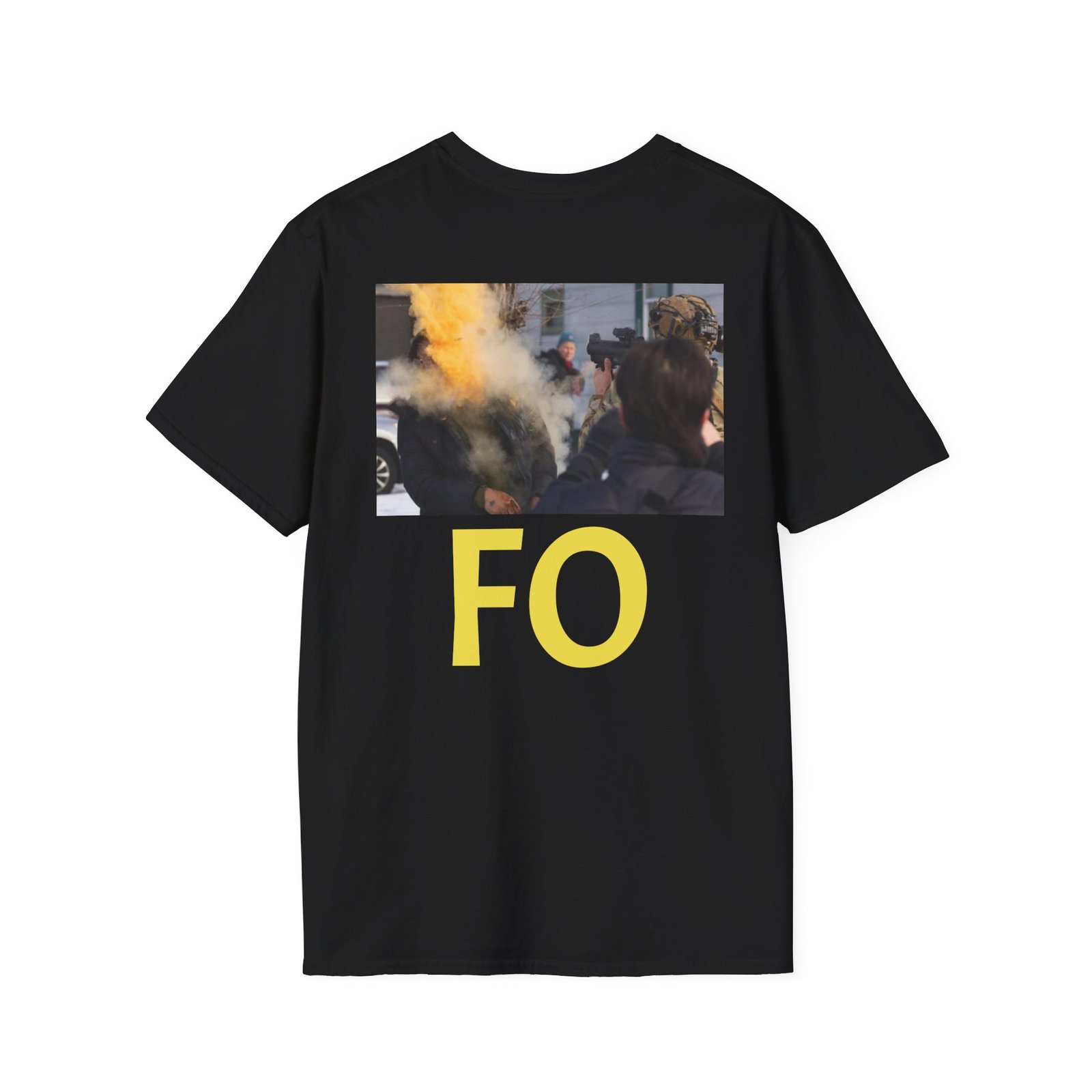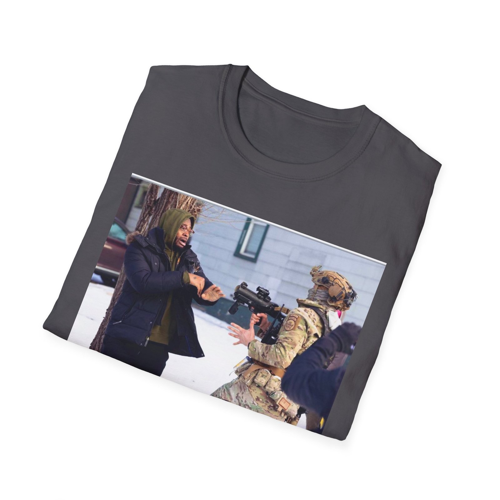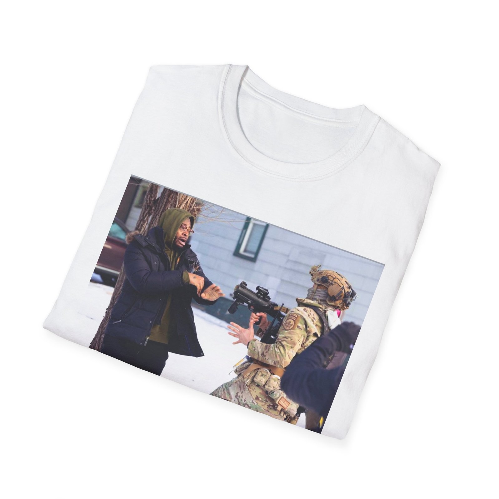 A soft, breathable tee that carries a raw, street-level energy. The lightweight ring-spun cotton feels gentle against the skin while the clean crew neckline and classic fit keep the silhouette simple so the bold photo graphics stand out. Imagery on front and back captures a tense, urban moment — printed with vivid DTG/DTF techniques so colors pop and details remain crisp. Wear it layered under a jacket or alone on warmer days; it moves easily from crowded city protests to late-night meetups. The shirt ages naturally with wear, keeping its attitude while remaining comfortable for everyday use.