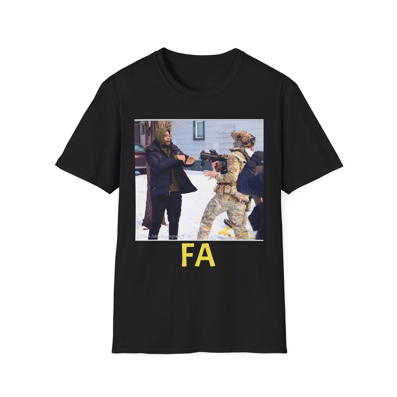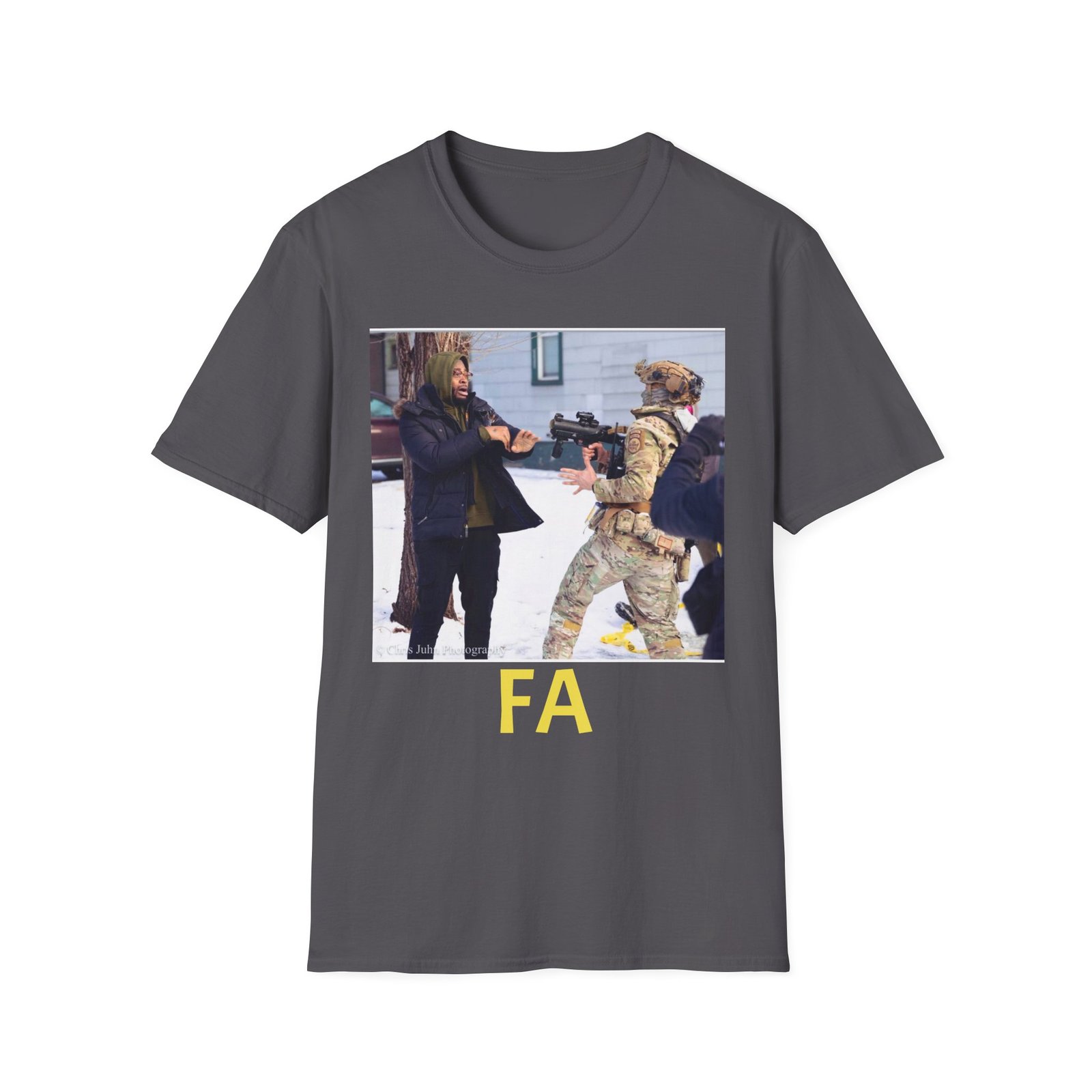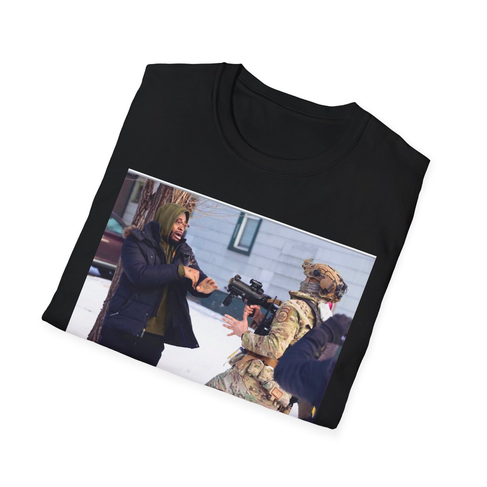 A soft, breathable tee that carries a raw, street-level energy. The lightweight ring-spun cotton feels gentle against the skin while the clean crew neckline and classic fit keep the silhouette simple so the bold photo graphics stand out. Imagery on front and back captures a tense, urban moment — printed with vivid DTG/DTF techniques so colors pop and details remain crisp. Wear it layered under a jacket or alone on warmer days; it moves easily from crowded city protests to late-night meetups. The shirt ages naturally with wear, keeping its attitude while remaining comfortable for everyday use.