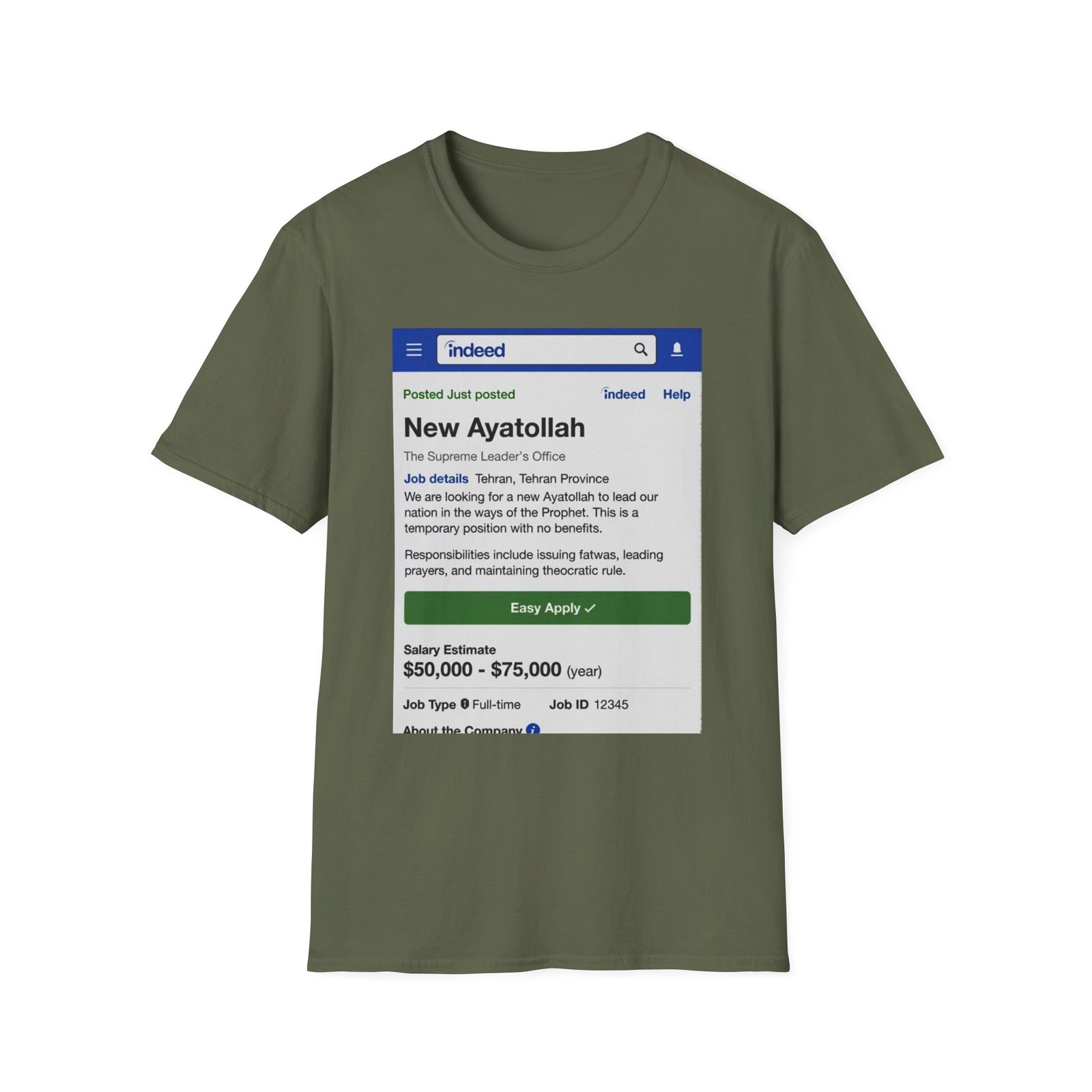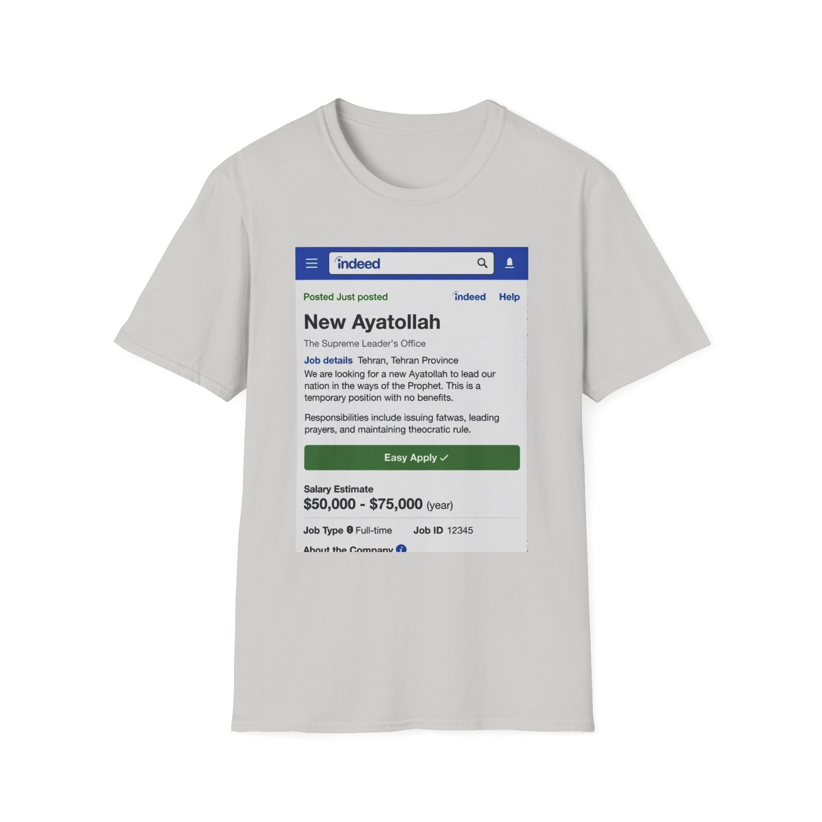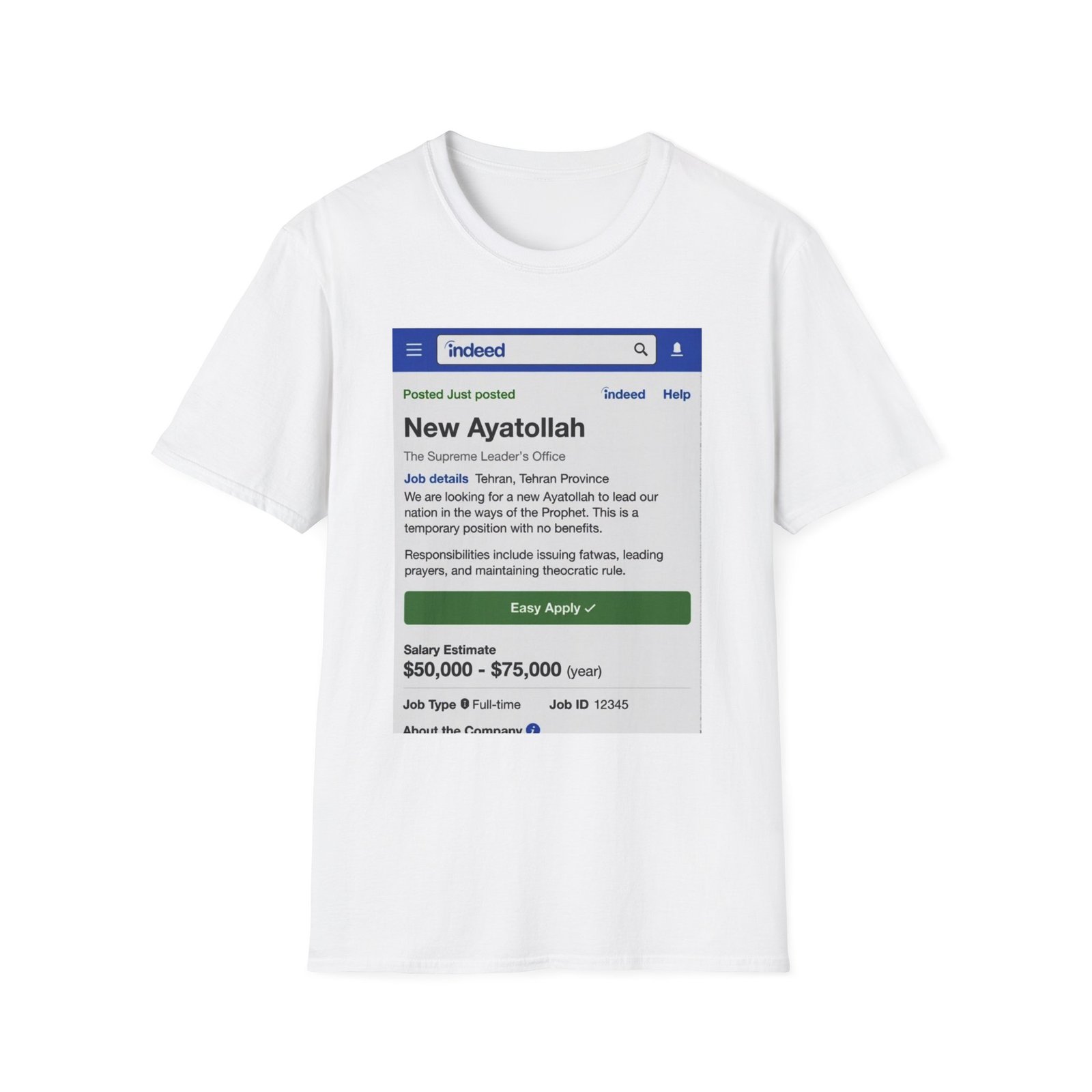 T-Shirt — ‘New Ayatollah’ Parody Job Listing Graphic Tee