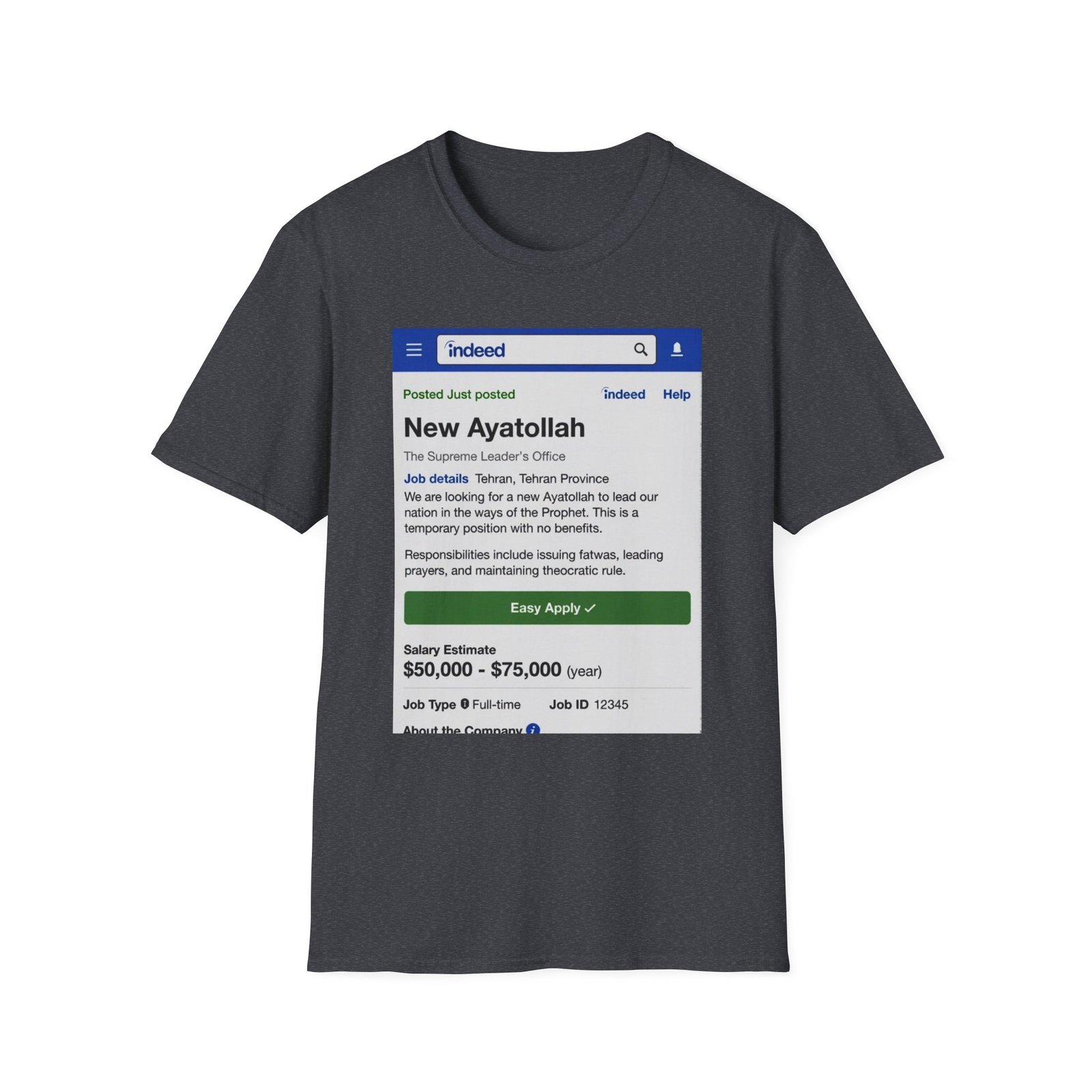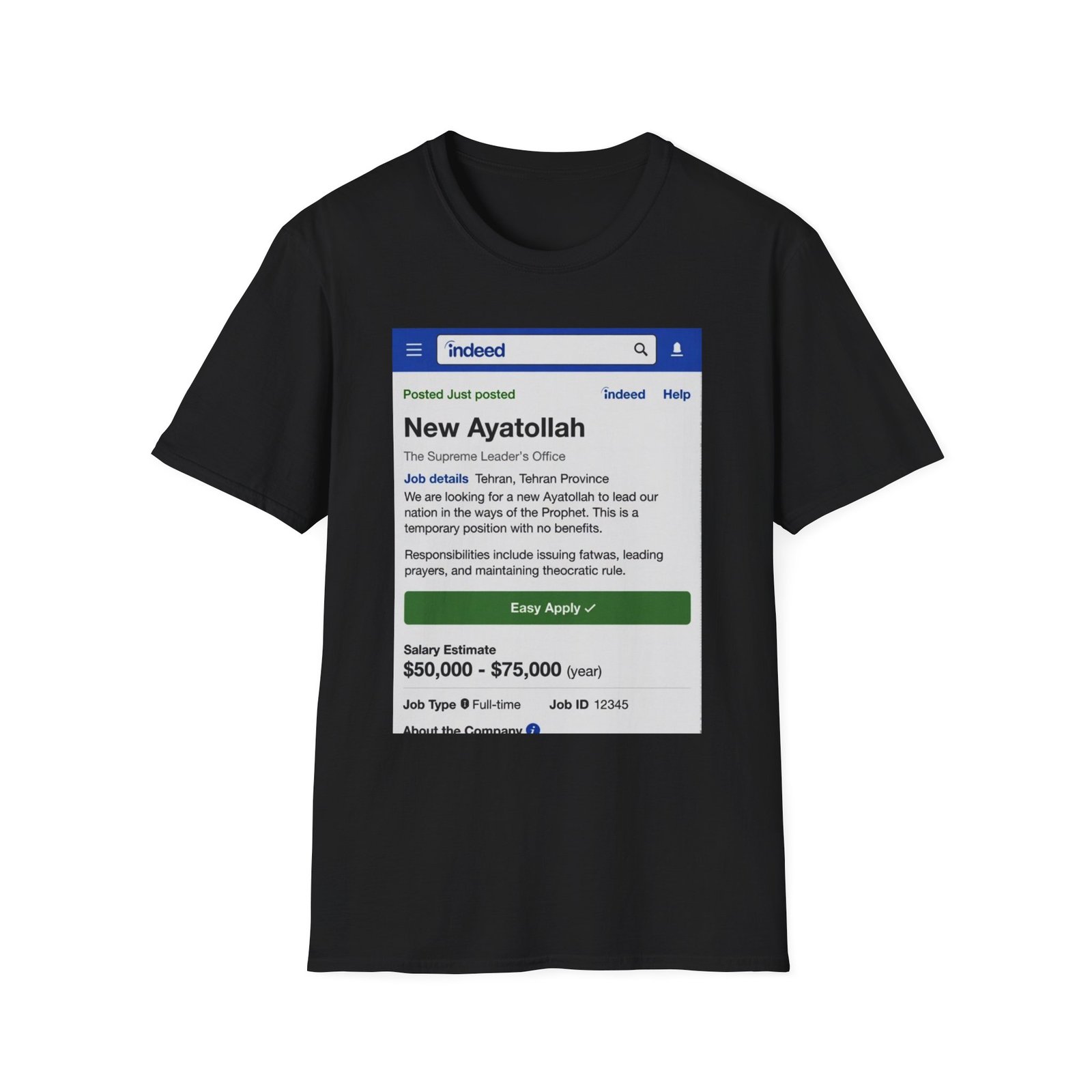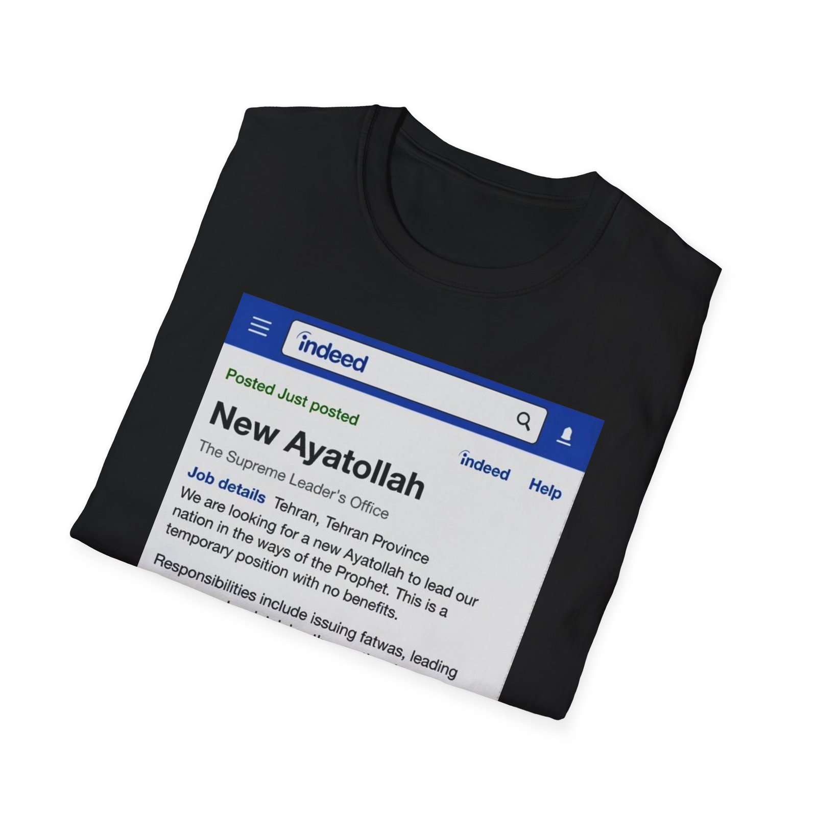 Be the first to review “T-Shirt — ‘New Ayatollah’ Parody Job Listing Graphic Tee”