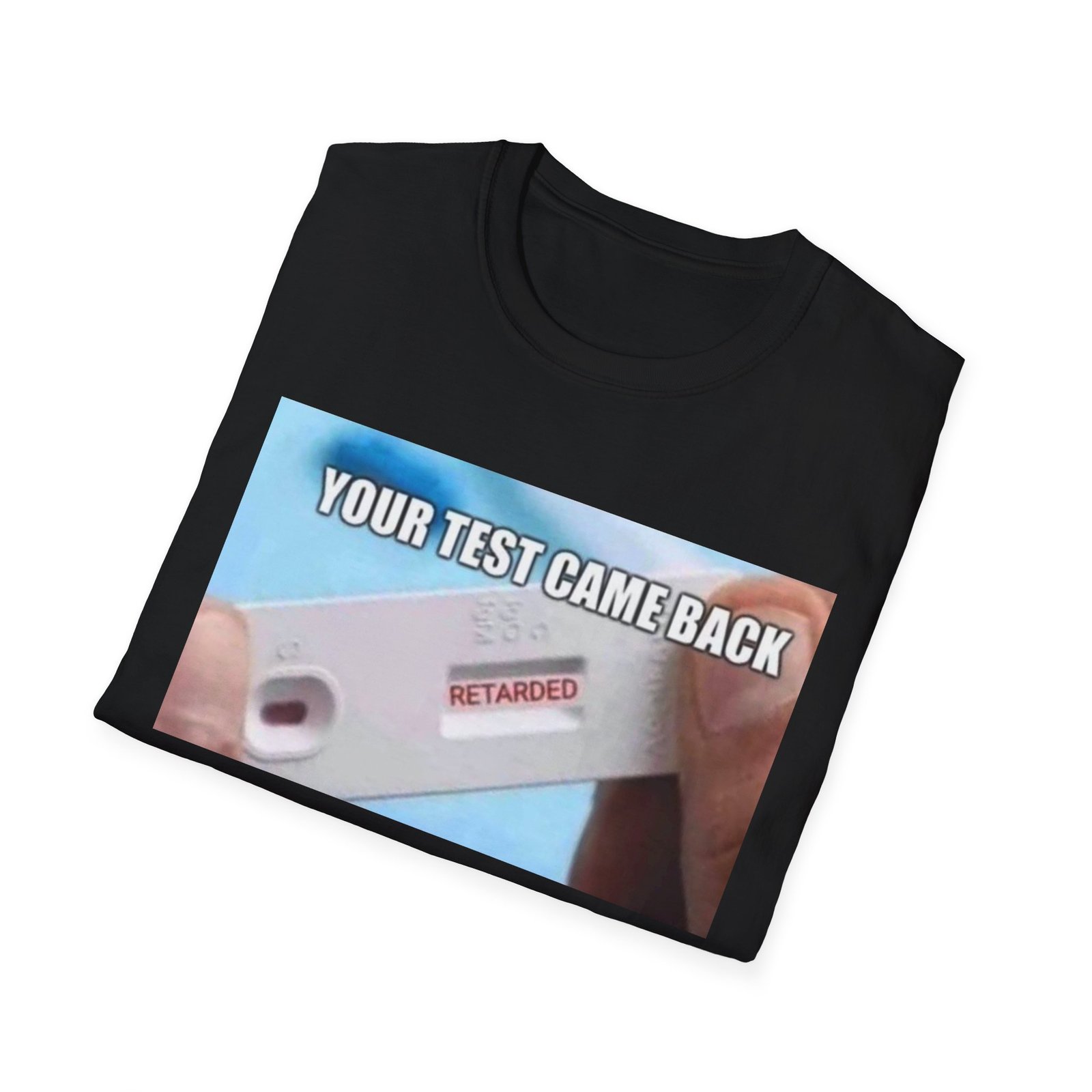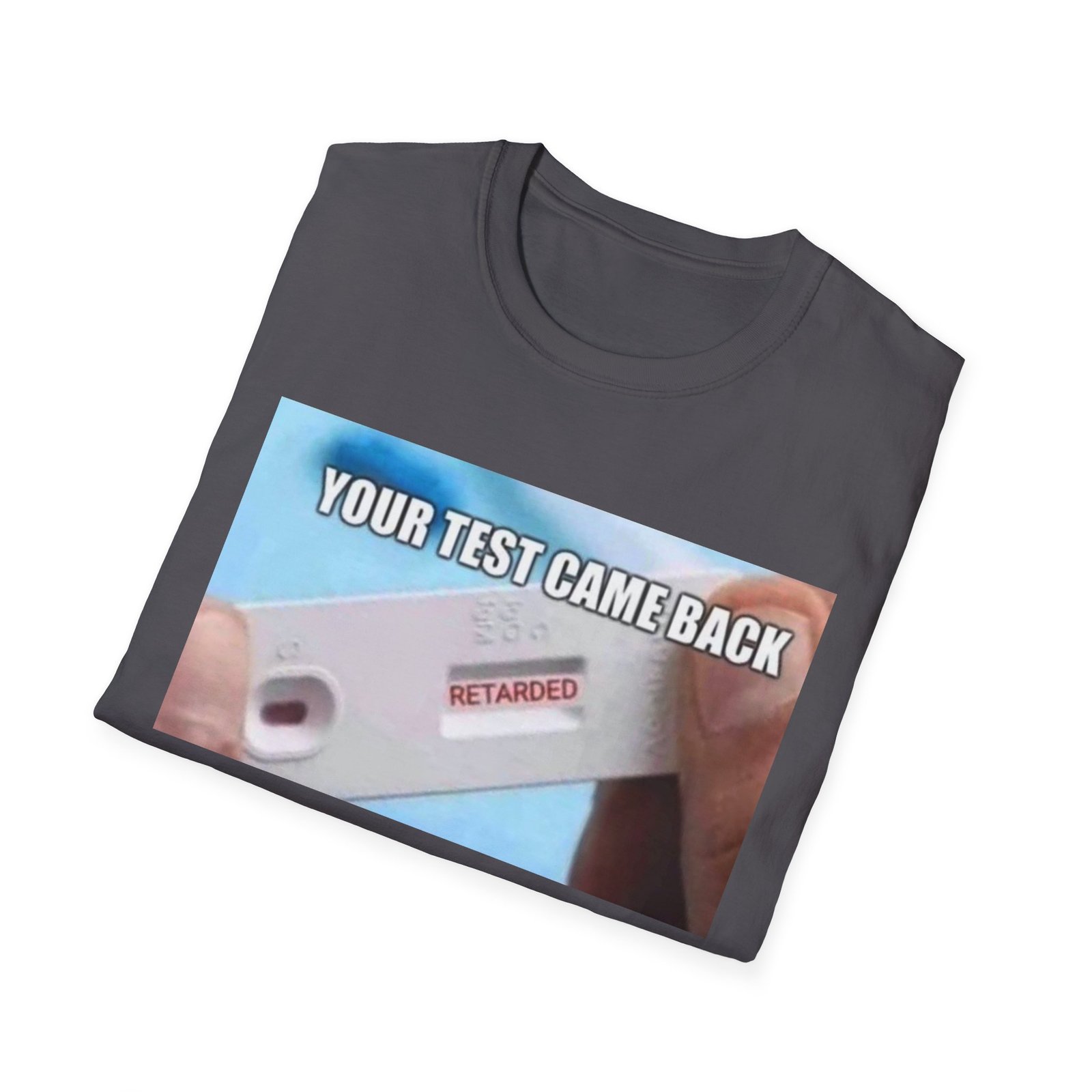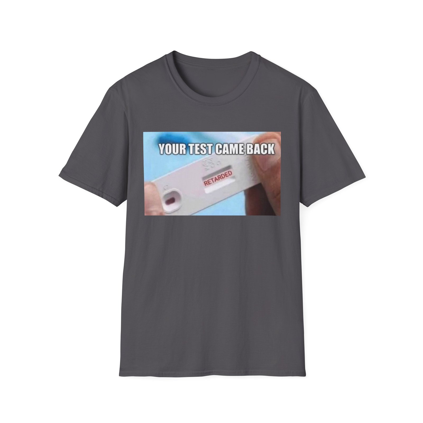 A lightweight, comfortable tee with a bold, irreverent graphic that starts conversations. The soft ring-spun cotton feels effortless against the skin while the clean crew neckline and classic fit keep the silhouette relaxed and easy to layer. The front print shows a close-up test device with a clear, cheeky message — a playful, slightly dark sense of humor that lands in casual hangouts, late-night runs to the store, or friendly gatherings. Durable, smooth fabric holds printed detail well so the image stays sharp wash after wash. Wear it when you want to break the ice, get a laugh, or nudge the group chat into chaos.