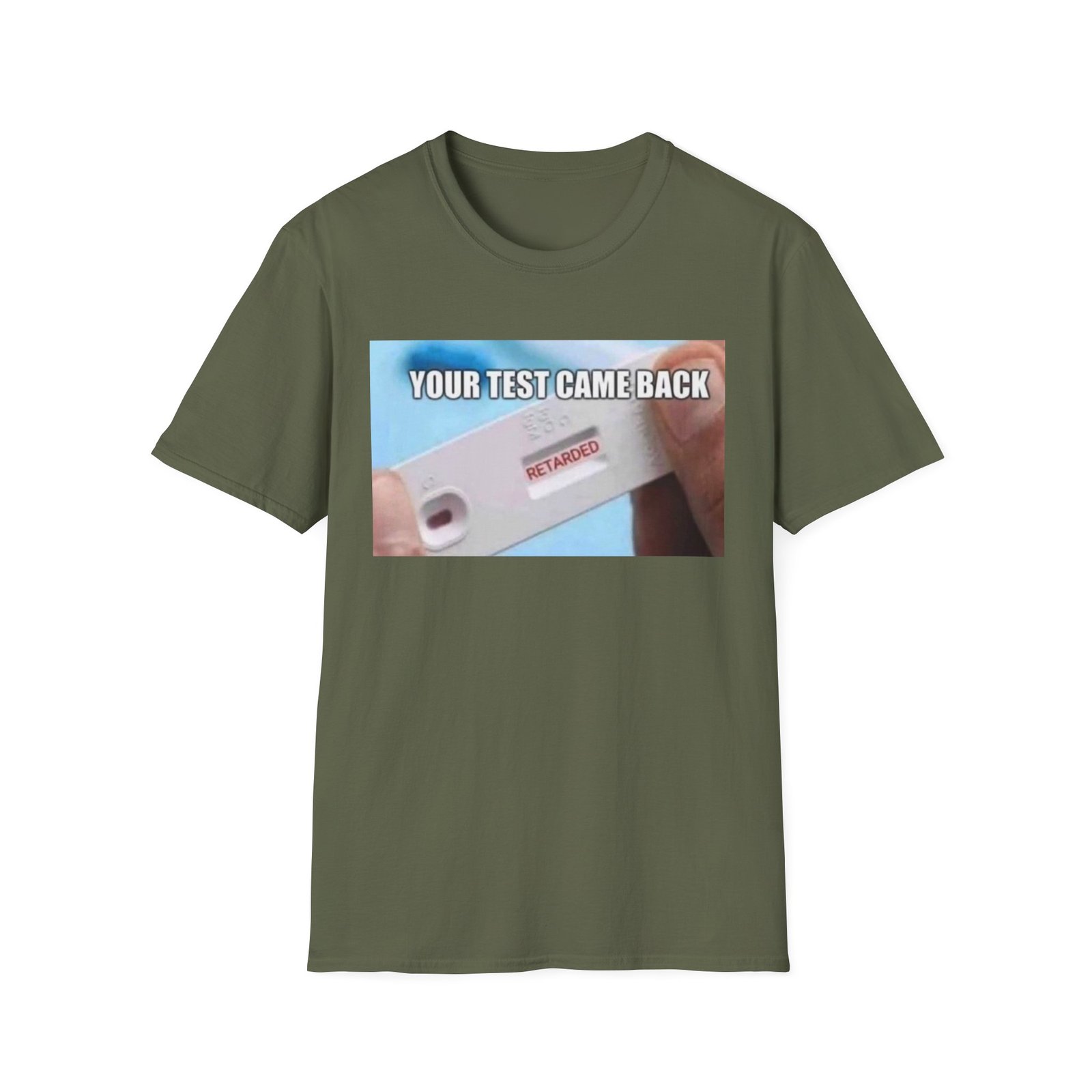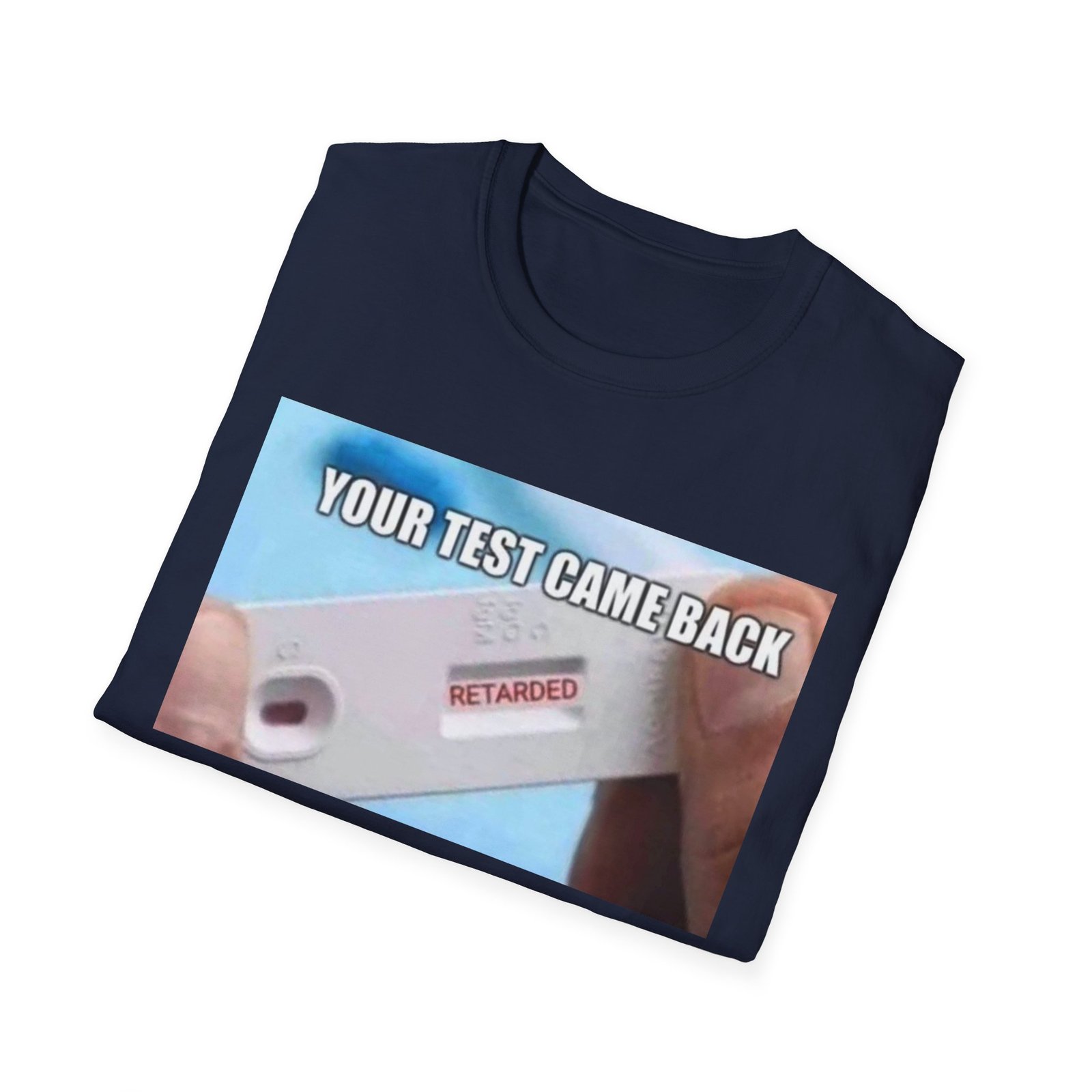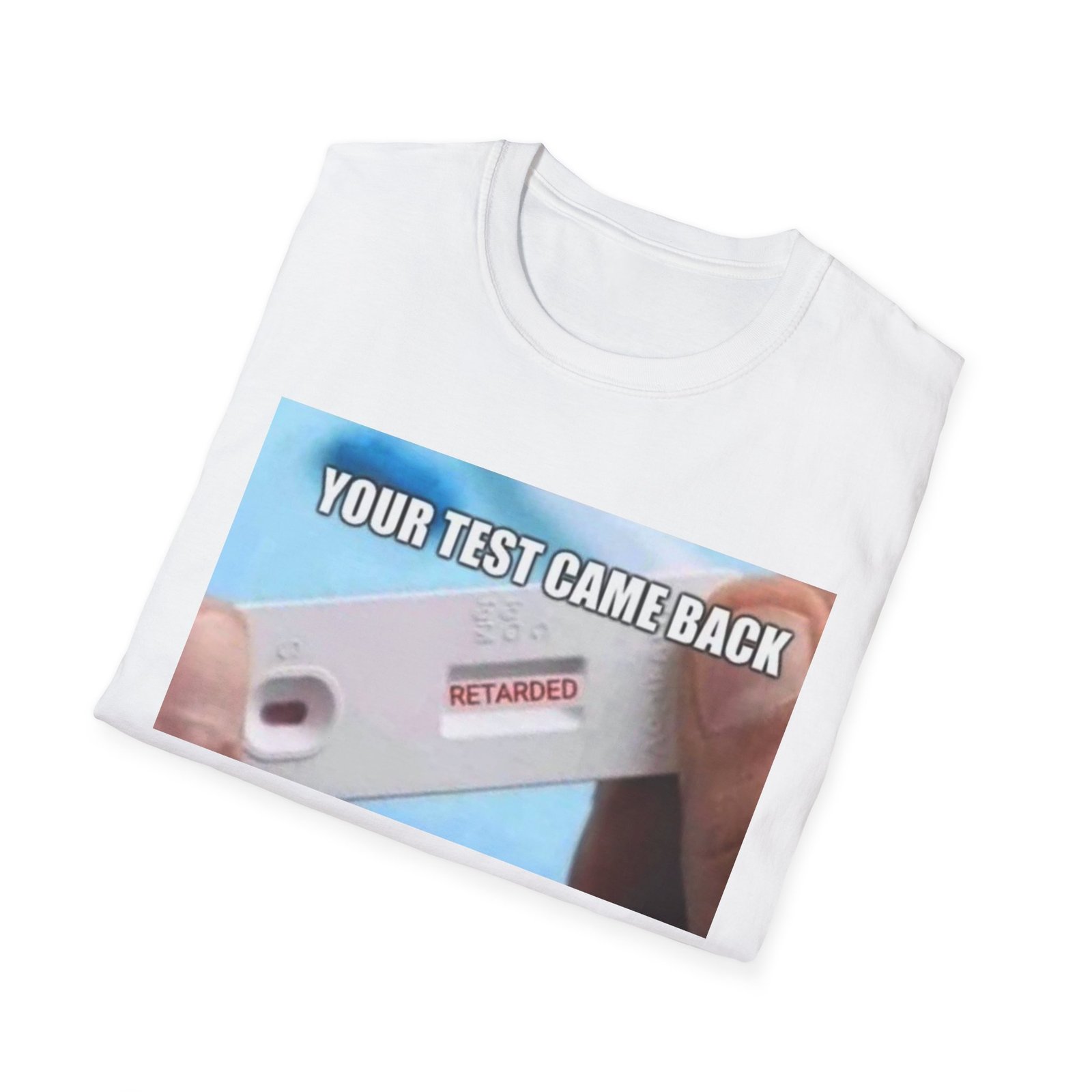 A lightweight, comfortable tee with a bold, irreverent graphic that starts conversations. The soft ring-spun cotton feels effortless against the skin while the clean crew neckline and classic fit keep the silhouette relaxed and easy to layer. The front print shows a close-up test device with a clear, cheeky message — a playful, slightly dark sense of humor that lands in casual hangouts, late-night runs to the store, or friendly gatherings. Durable, smooth fabric holds printed detail well so the image stays sharp wash after wash. Wear it when you want to break the ice, get a laugh, or nudge the group chat into chaos.
